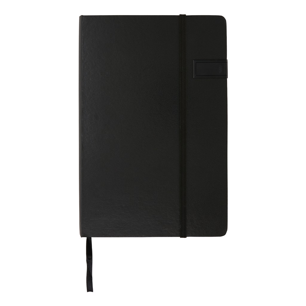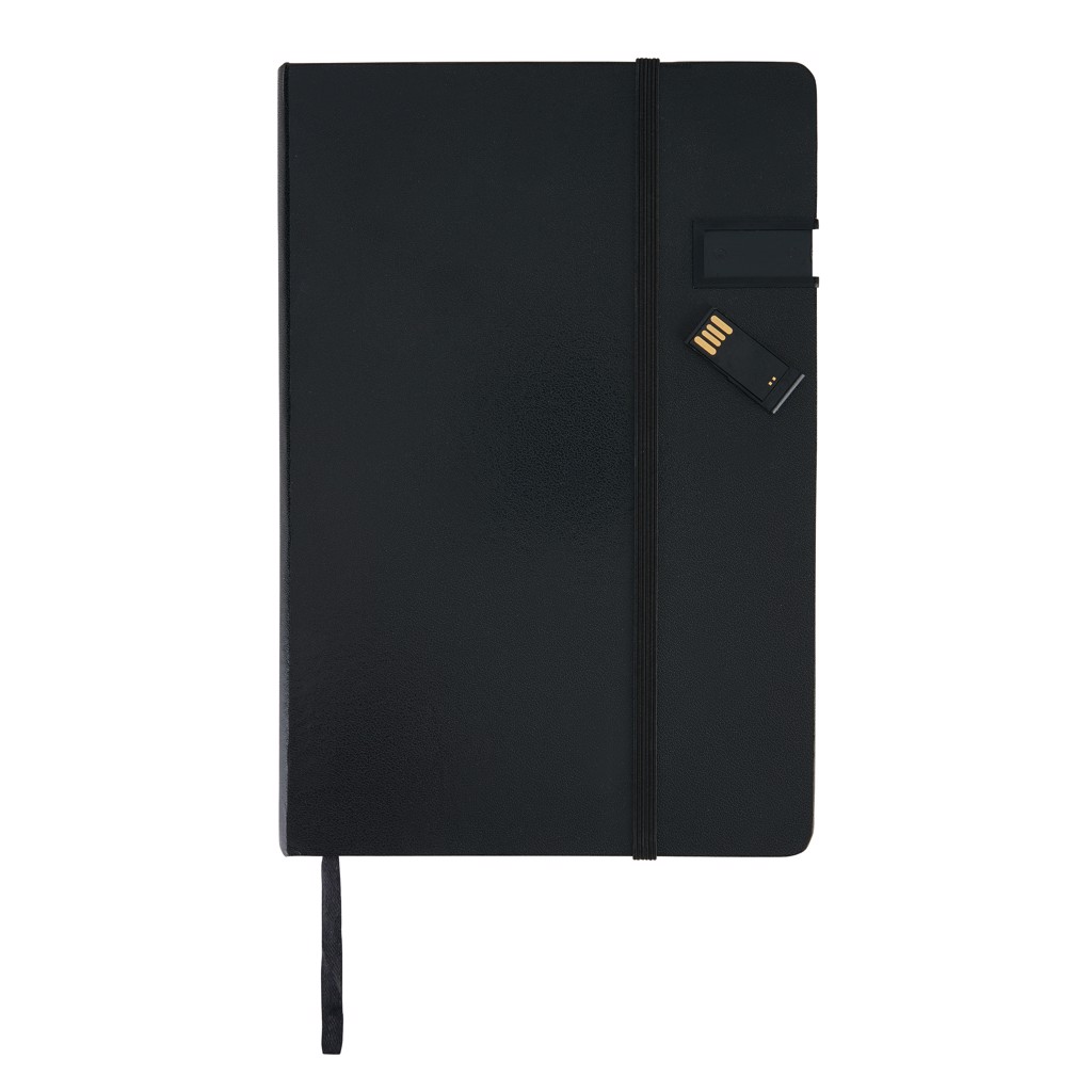 Tento poznámkový blok A5 s pevnými deskami a 4GB USB diskem prostě musíte mít. Je vybaven záložkou a pružným popruhem kolem přebalu. 160 listů papíru s gramáží 80 g/m2.