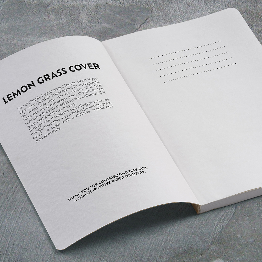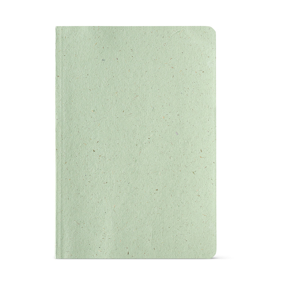 Dostoevsky A5 notebook with Lemongrass cover. With 196 recycled 80gsm dotted pages, a designated space for date and page number, it features a softcover and a flysheet with storytelling. Supplied in an individual kraft sleeve.