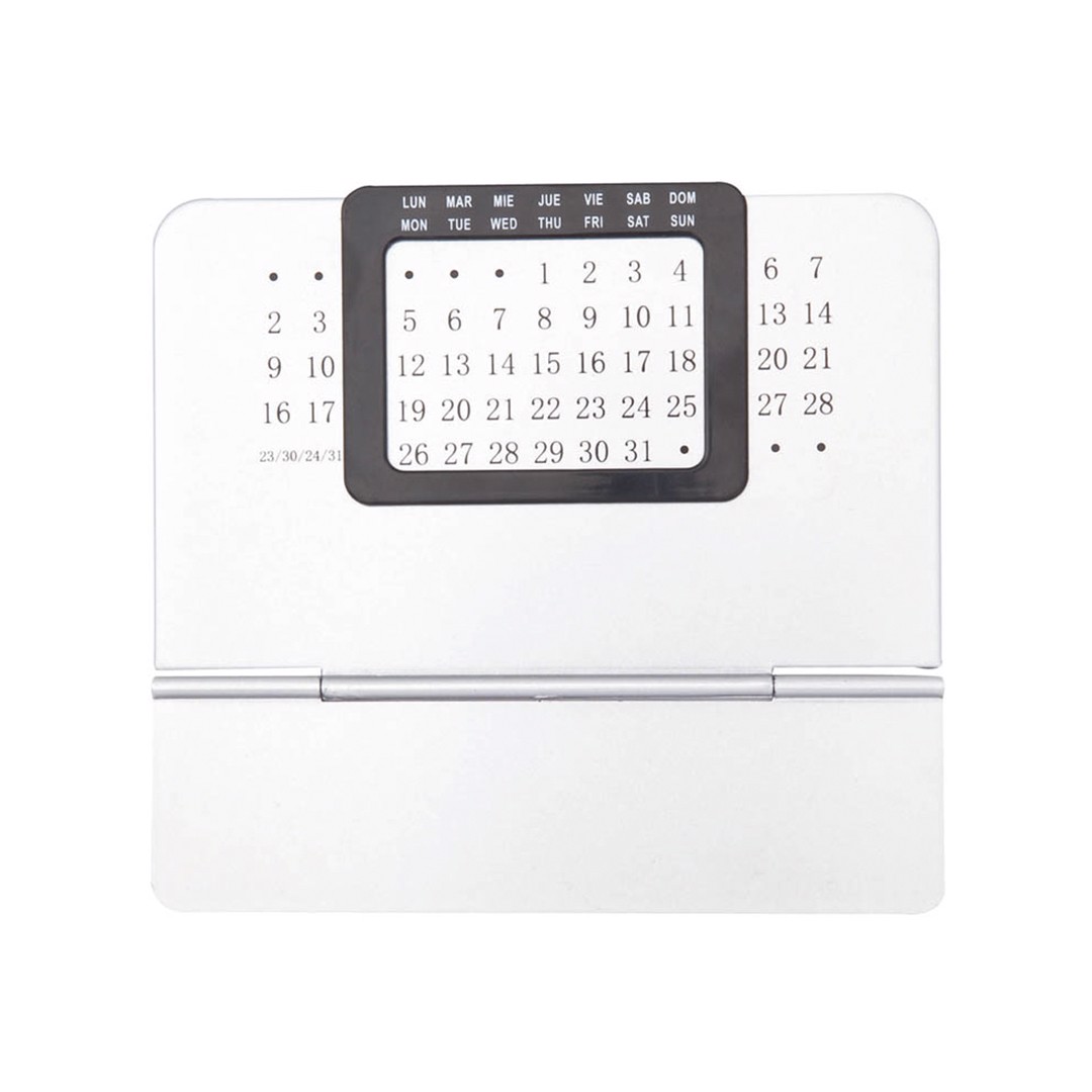 Perpetual calendar in smooth finishing with folding holder. With blank band for pad printing.