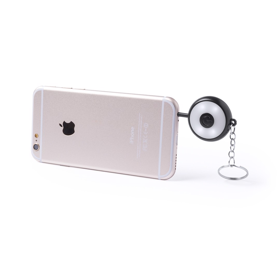 4- LED flash module, compatible with any type of mobile device. With 3.5mm jack type smartphone accessory accessory and especially designed for capturing videos. With carry keychain. Button cell batteries included. 4 Leds. Button Batteries Included