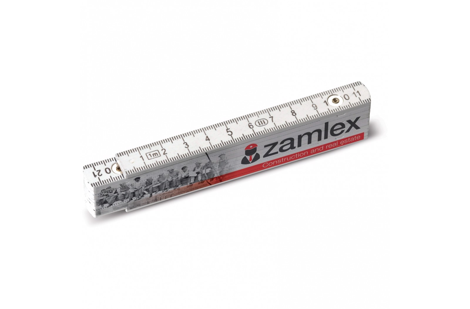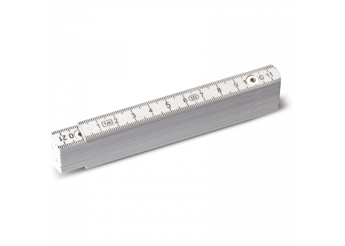 Skládací metr s oboustranným potiskem do 200 cm na jedné straně a do 79 palců na straně druhé. Metr je složen z několika skládacích dílů.