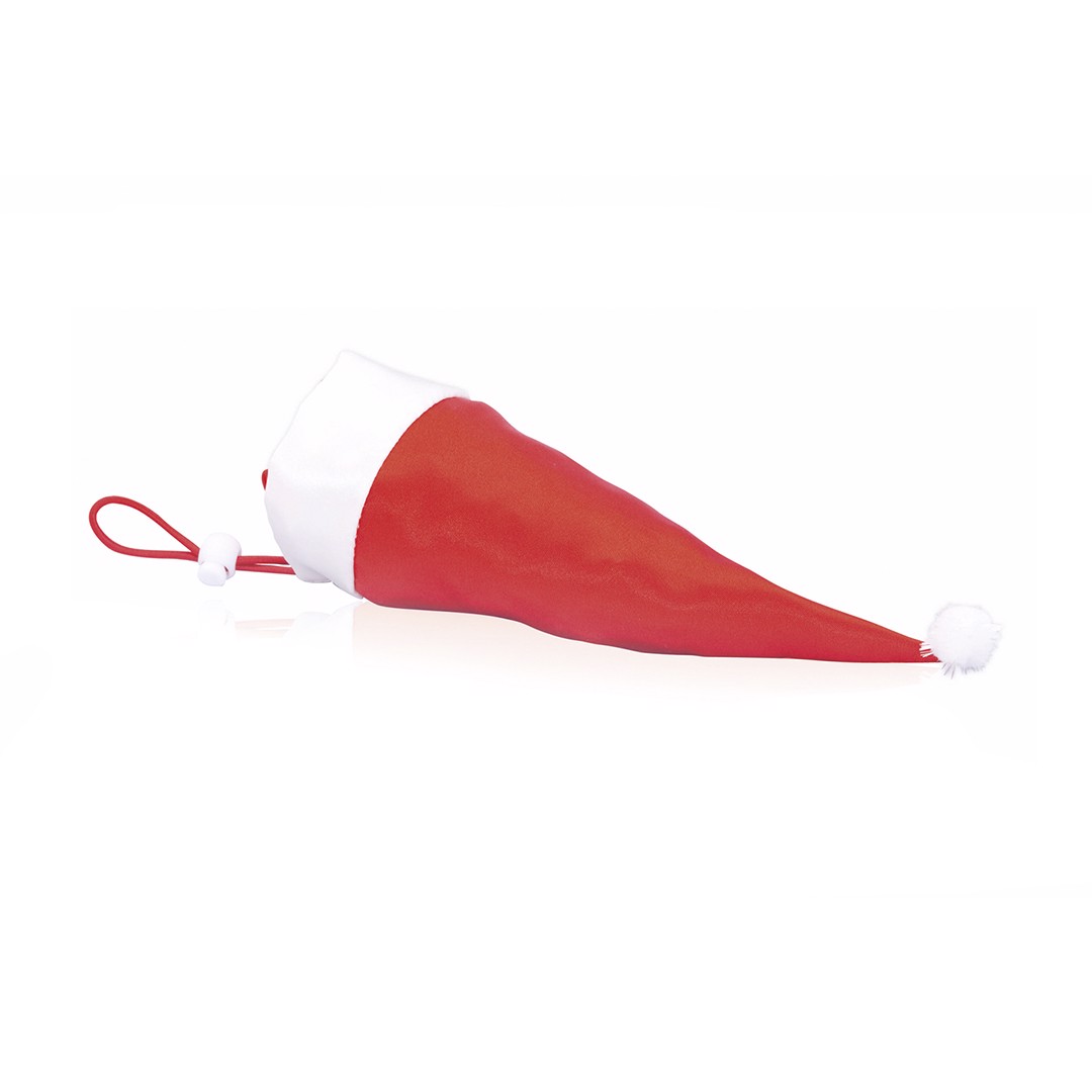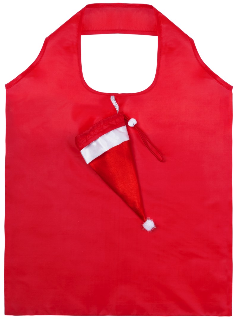 Folding bag of fun Christmas design in bright red color. In soft 190T polyester, with stitched finish and folding pouch in the shape of a Santa Claus hat.