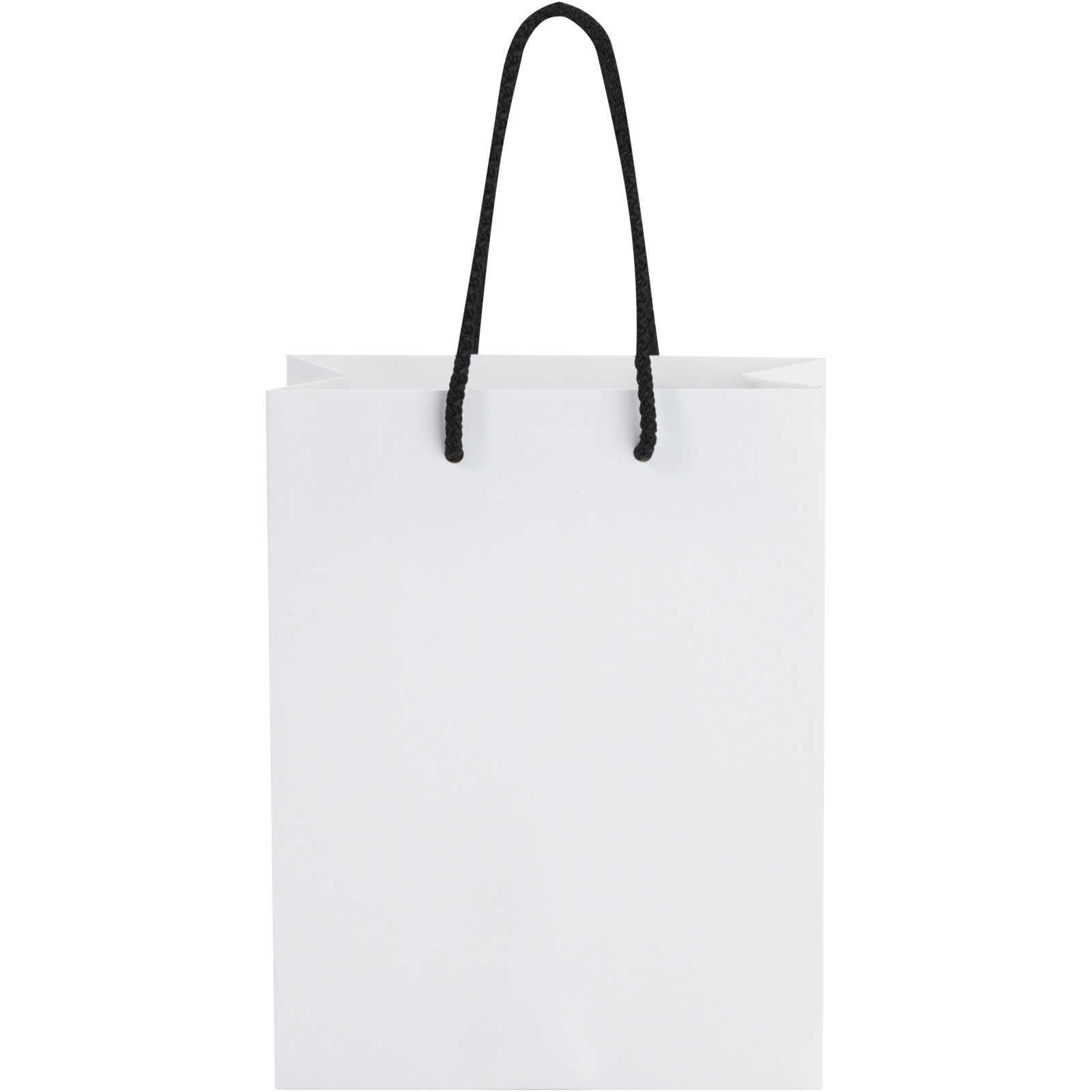 Handmade 170 g/m2 integra paper bag with plastic cord handles - 18 x 9 x 23 cm - White / Black