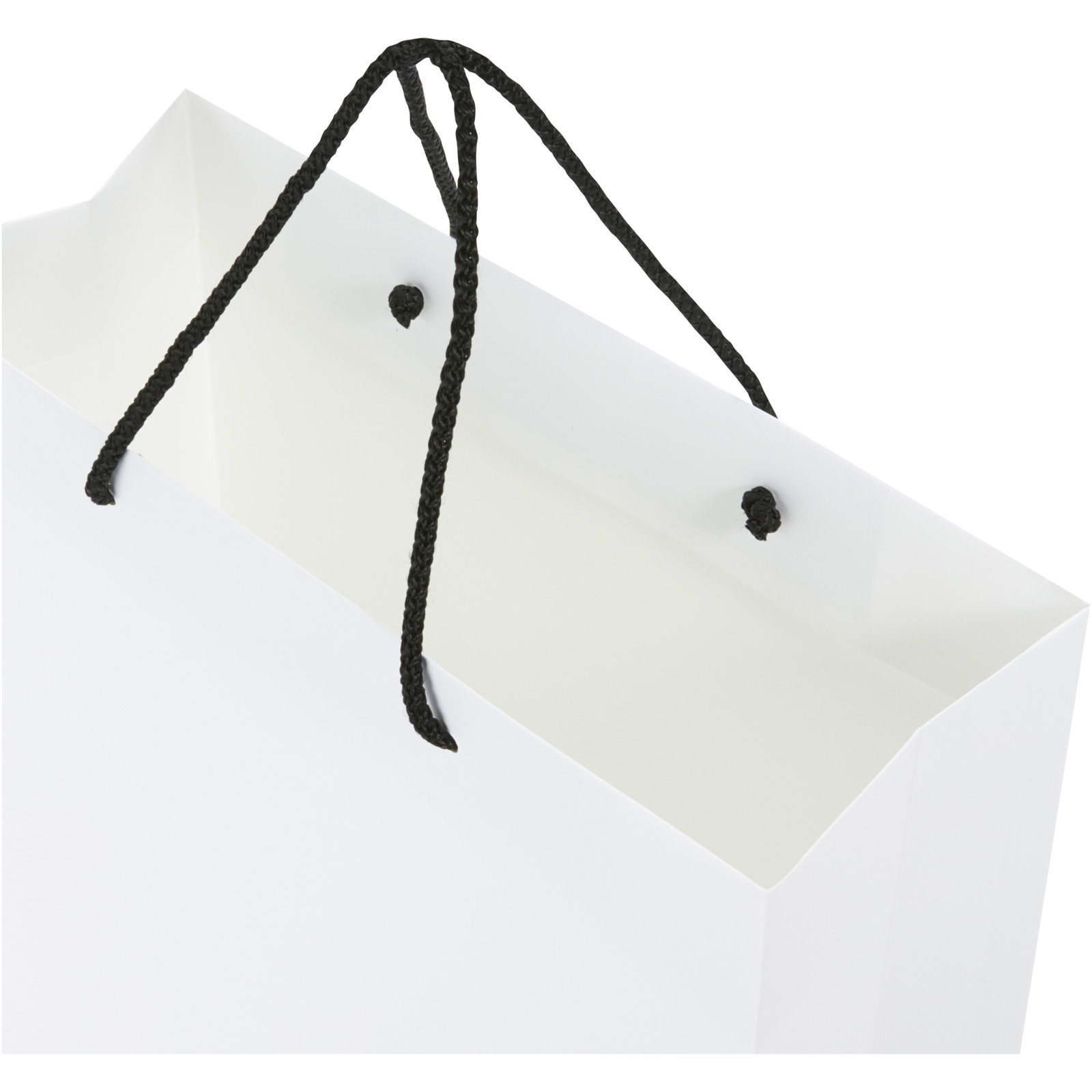 Handmade 170 g/m2 integra paper bag with plastic cord handles - 31 x 12 x 41 cm - White / Black