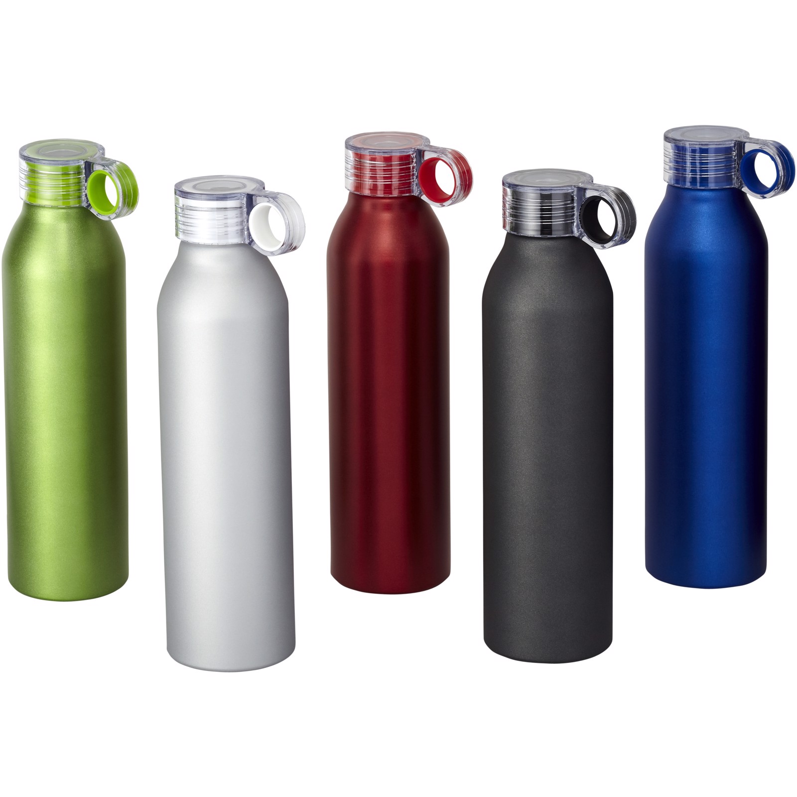 Dobře vypadající a lehká, to je ve zkratce hliníková sportovní láhev Grom 650 ml. Průhledné šroubovací víčko je odolné proti rozlití a má poutko s funkcí color-pop, což zajišťuje snadné přenášení. Matný kovový povrch dodává láhvi stylový vzhled. Ať už je třeba oslavit cokoli, láhev Grom jistě potěší každého obdarovaného.