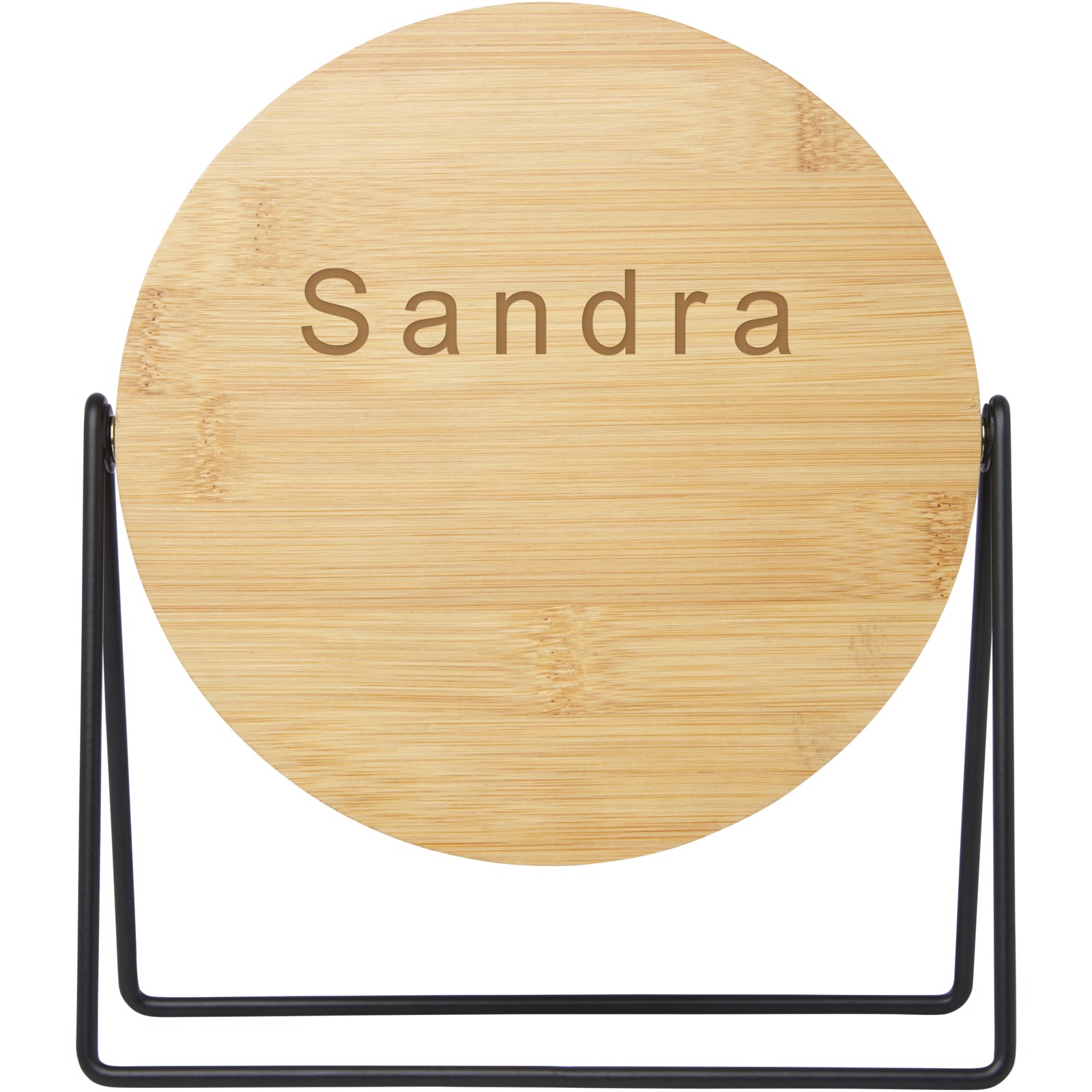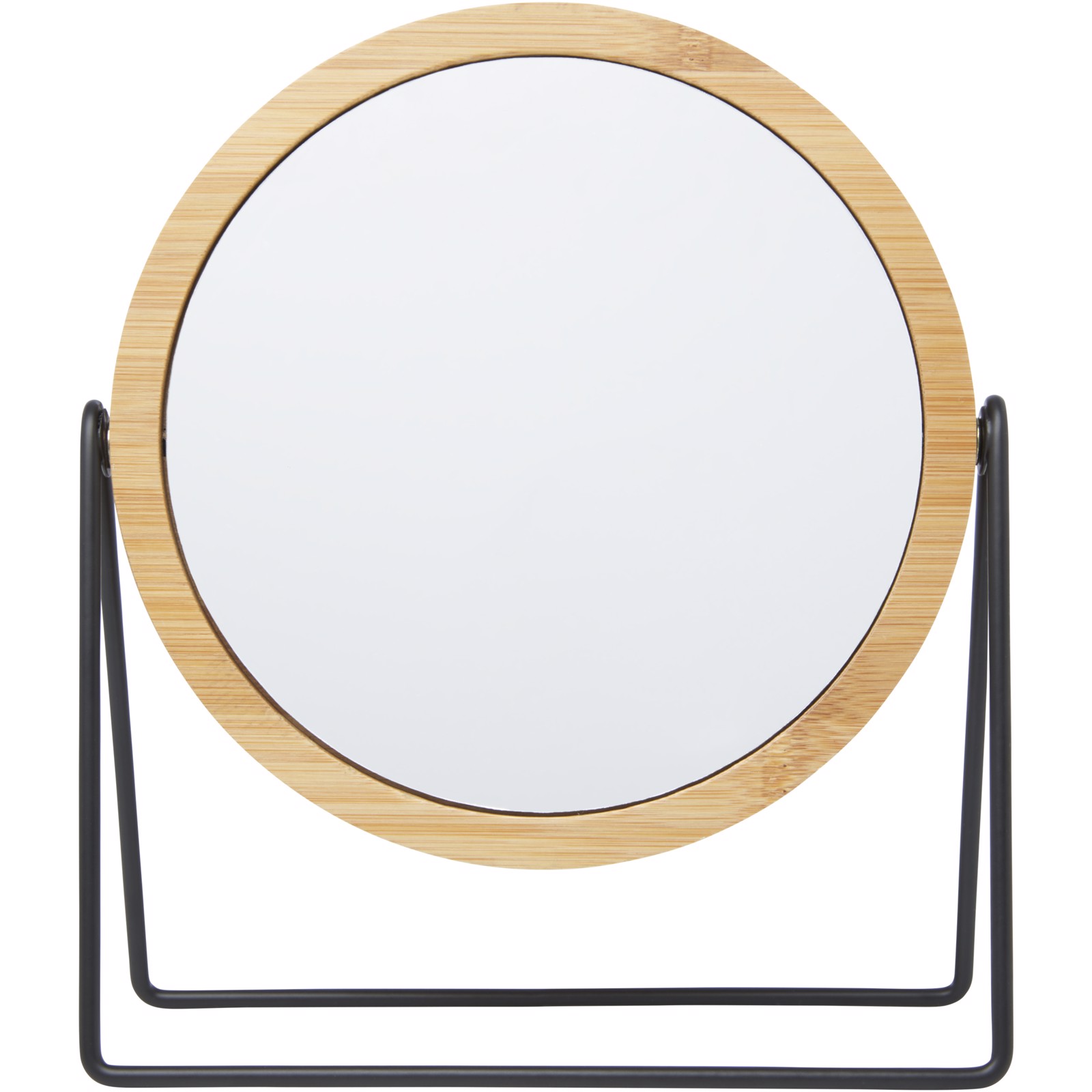 360-degree rotating mirror for placing on vanity or countertop. The mirror is made of bamboo that is sourced and produced following sustainable standards.