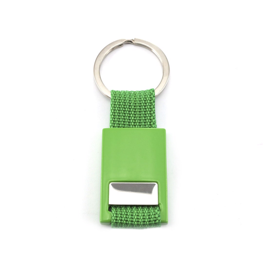 Keychain of fun design with polyester ribbon of varied and bright tones. With matching color metal body especially designed for laser printing.