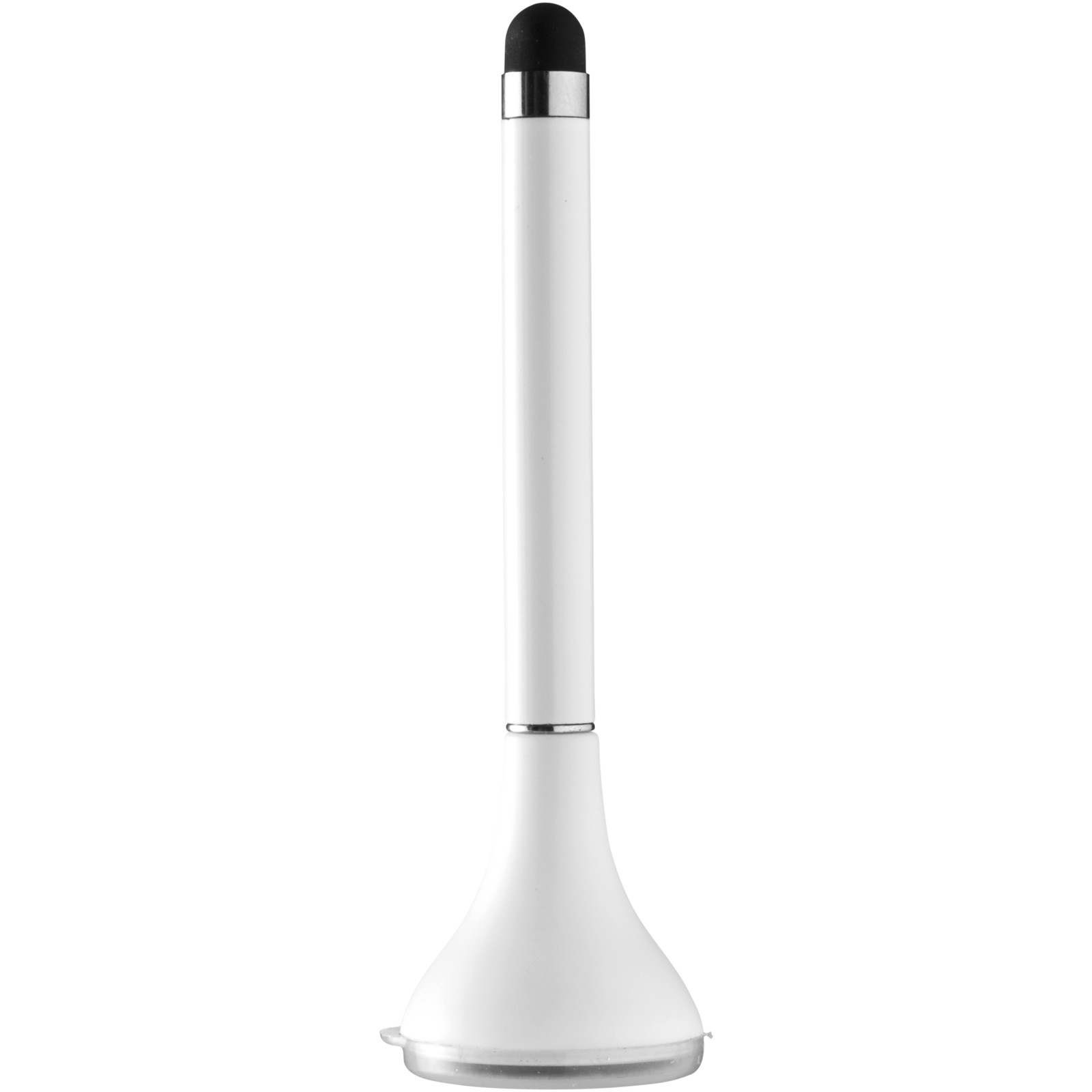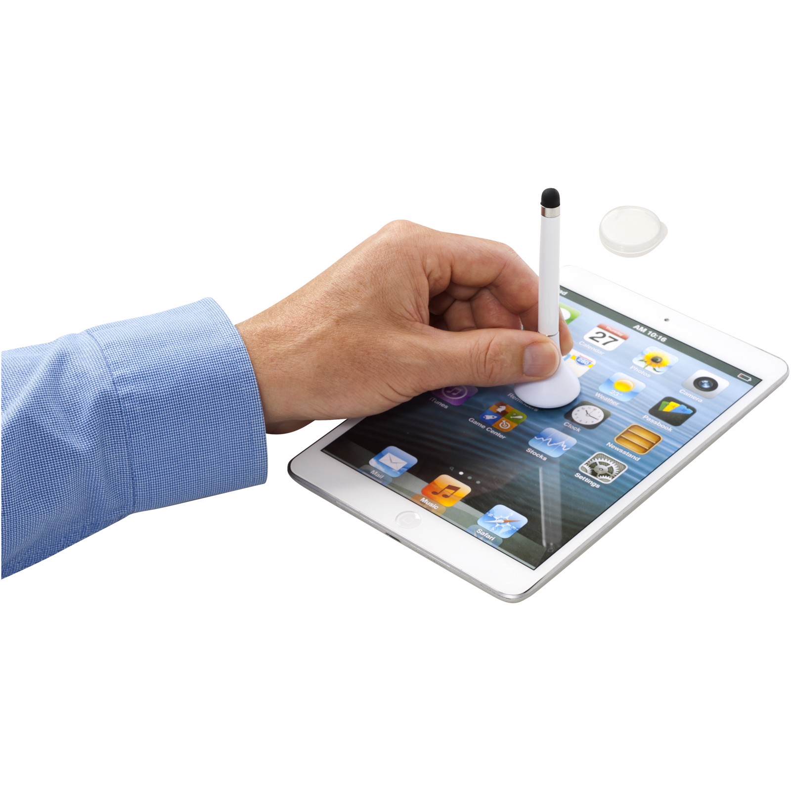 Multifunkční kuličkové pero a stylus s čistítkem displeje a odnímatelným víčkem, které lze využít také jako držák na pero.