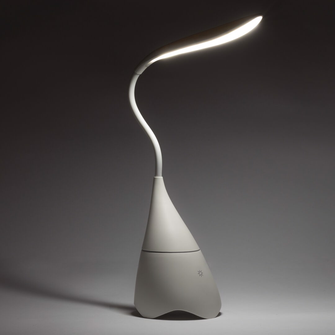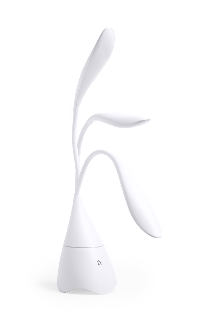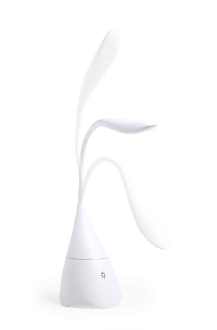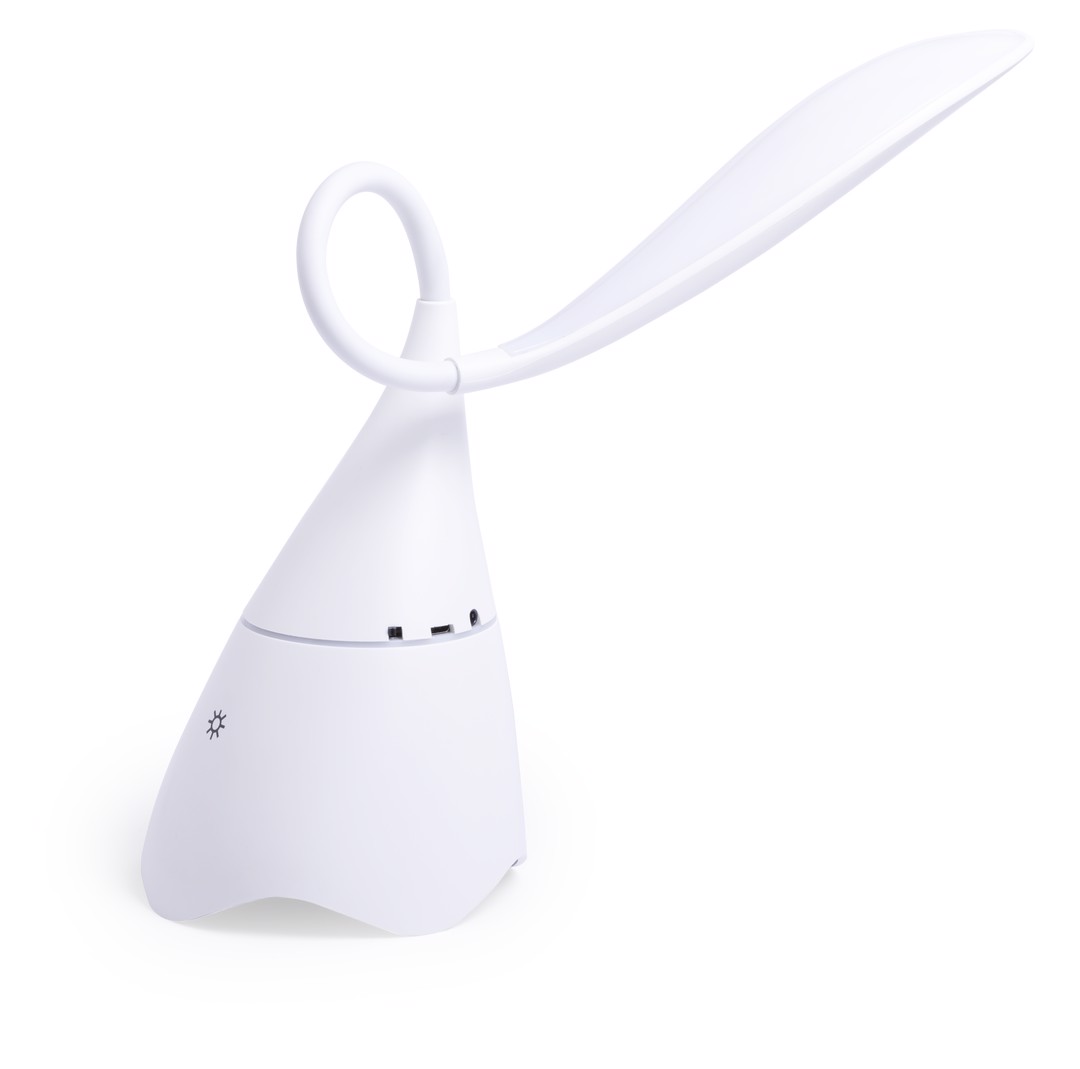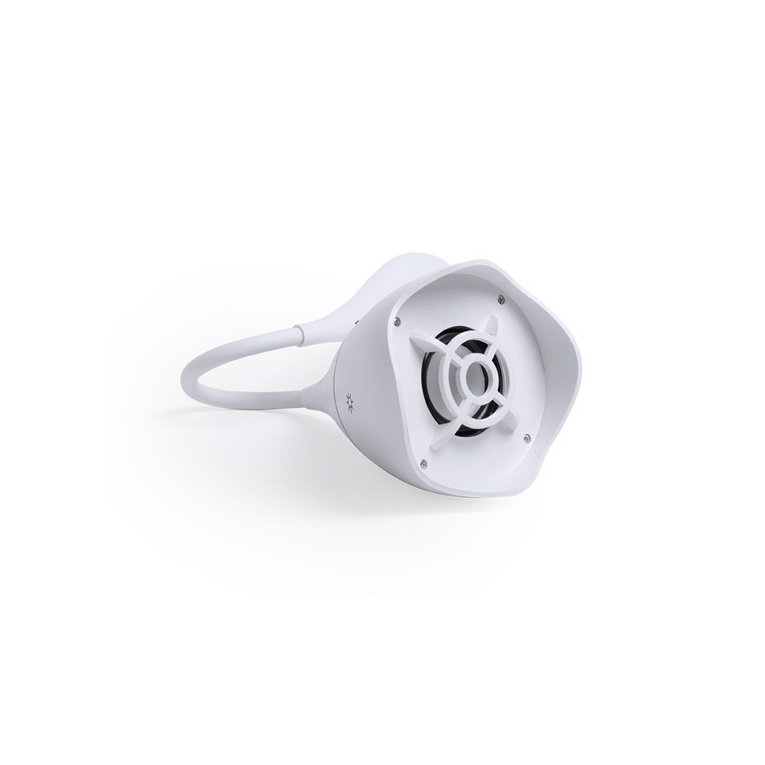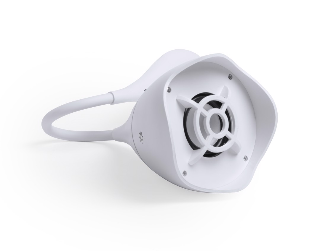 Eye catching speaker lamp in white mat finishing, with integrated speaker. Blueetooth® connectivity 4.2, 5W. 18 LED lights with adjustable lighting intensity and adjustable height. Hands free function and line input via jack 3,5mm connector. Including micro USB charging and input line cable -jack 3,5mm-. Presented in an attractive design box. 18 Leds. Flexible. 3 Light Modes. Bluetooth Connection. Power 5W. USB Rechargeable. Cable Included