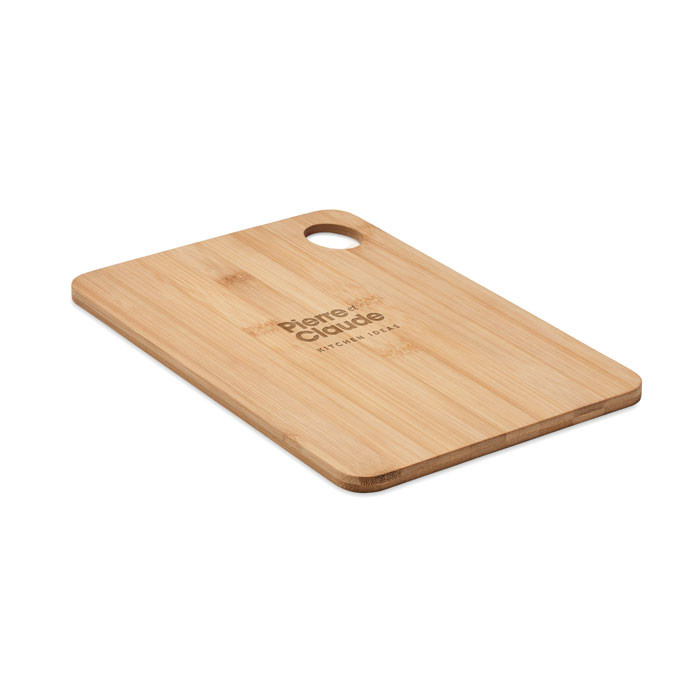 Large cutting board in bamboo wood with hanging hole. Bamboo is a natural product, there may be slight variations in colour and size per item, which can affect the final decoration outcome.