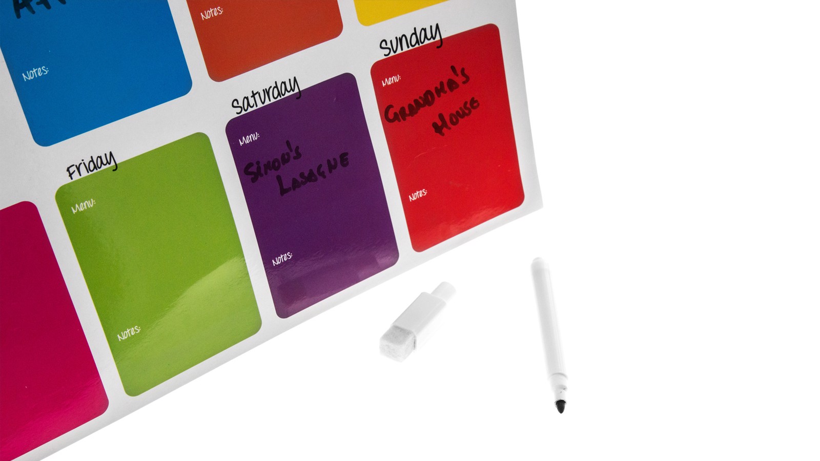 Magnet for gigantic tasks with week view distribution and magnetic pen with eraser included. Felt Tip Pen and Eraser Included