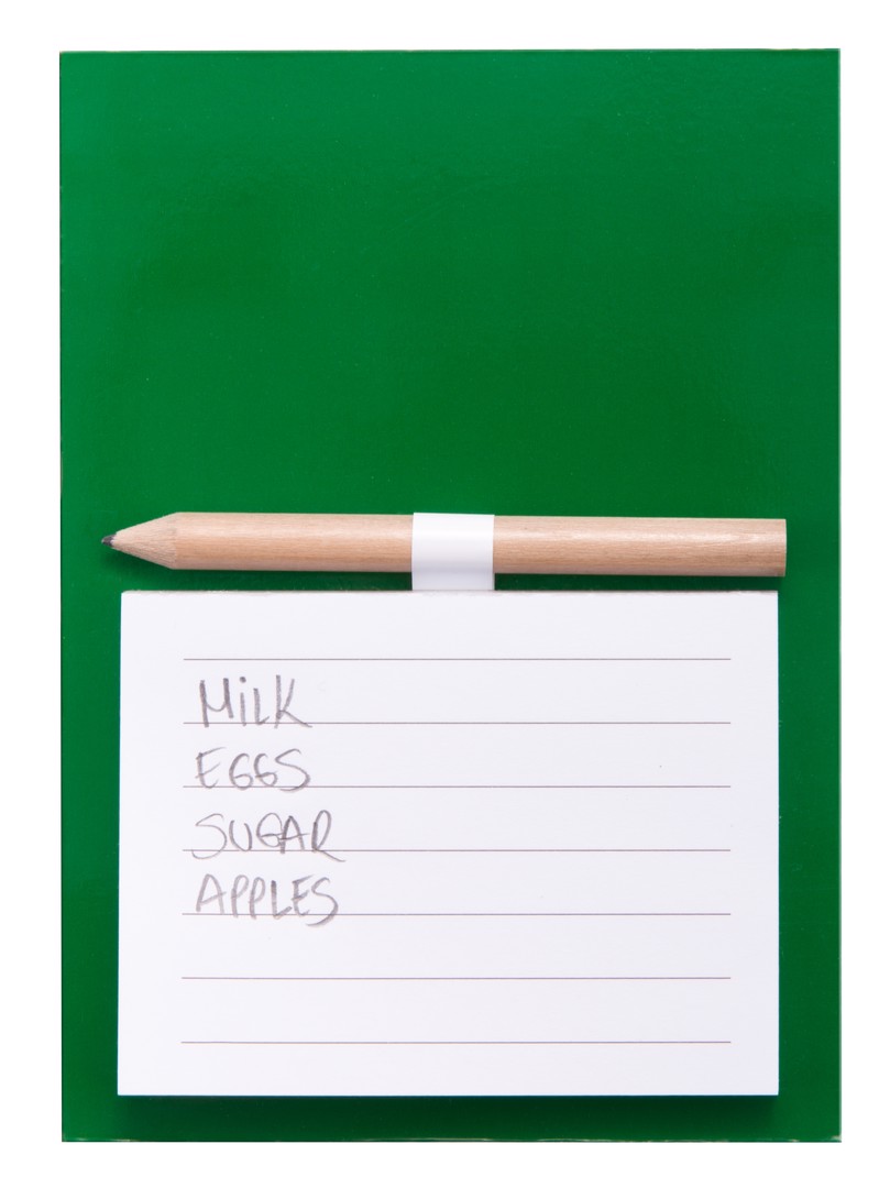Magnet notepad in resistant cardboard of bright and varied colors. 40 sheets with striped design, with pencil and holder. 40 Sheets Notepad. Pencil Included