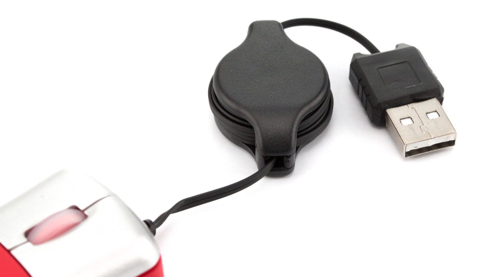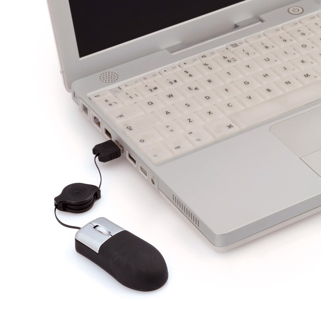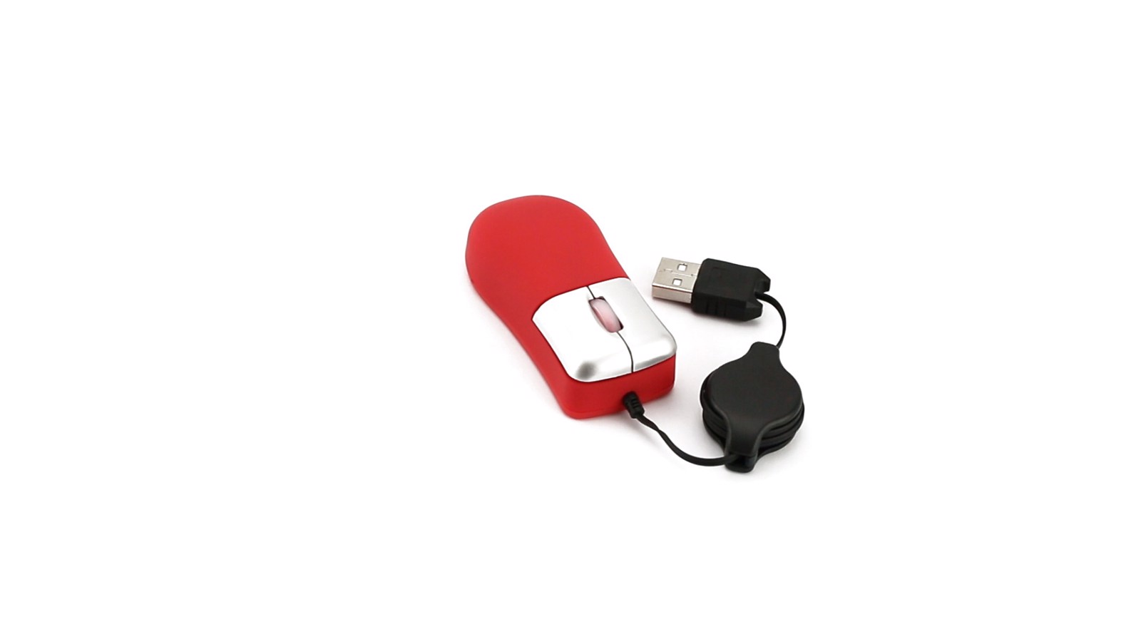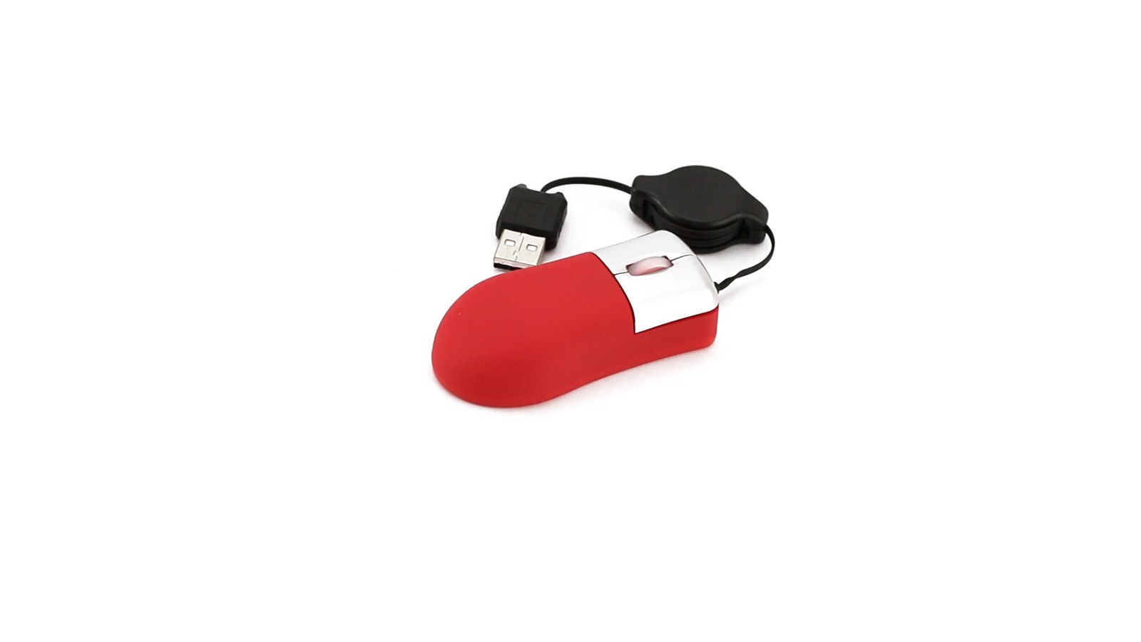 Mini optical mouse with retractable cable in bold colors. Presented in an individual box. Optical. Extendable Cable