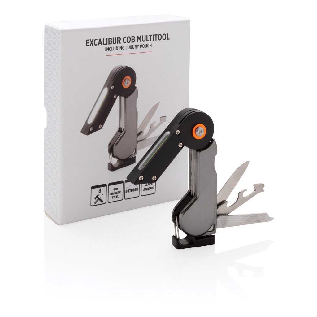Vysoce kvalitní multifunkční nůž s integrovaným silným COB světlem a magnetem. Funkce: COB světlo, nůž, otvírák na lahve a plechovky, pilník, klip, magnet. Tělo z hliníku, nástroje z nerezové oceli. Baleno v luxusní krabičce s vysoce kvalitním 1680D pouzdrem.