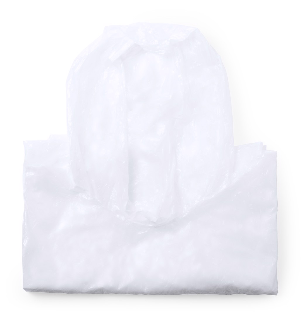 Adult size poncho in white, frosted color -size 127x102 cm-. Presented in an individual case with lid and matching color carabiner. Case available in a wide range of colors. One size fits all. One Size. Adult. 127 x 102 cm