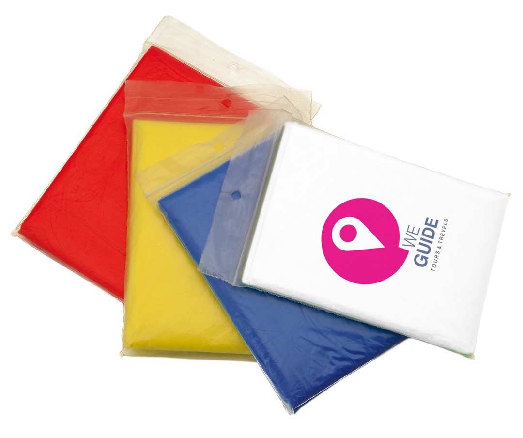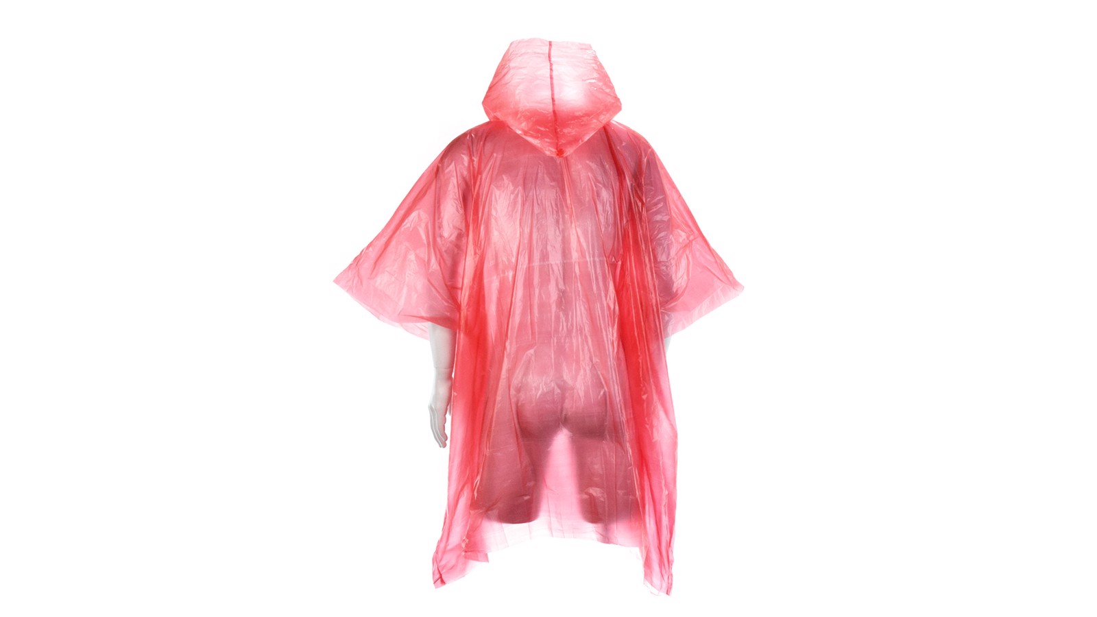 HDPE poncho in bright tones and heat-sealed finish. Presented in an individual transparent bag. One size fits all for adult, in measures 127x102cm. One Size. Adult. 127 x 102 cm
