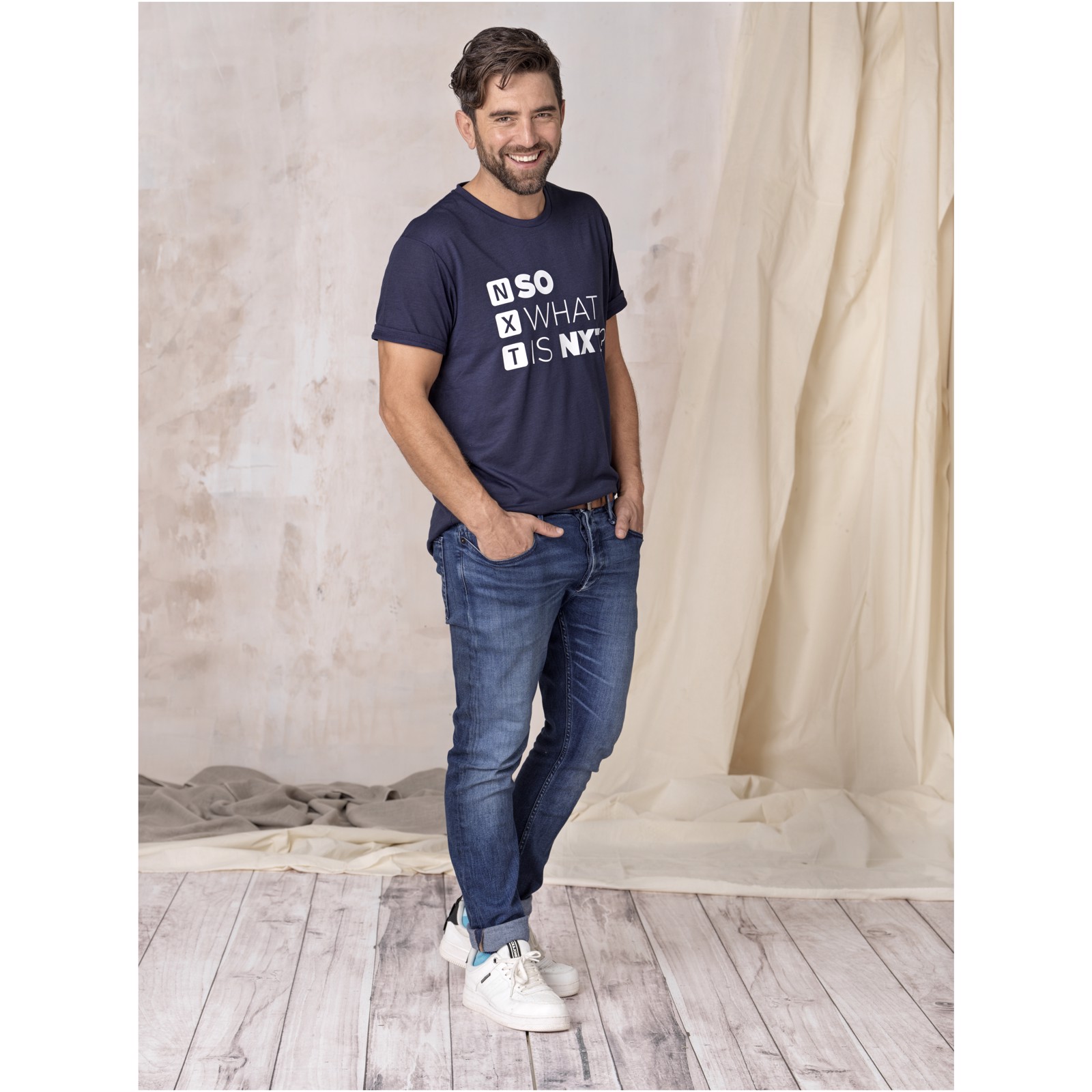 Udržitelné reklamní předěty. Krk Scoop. Boční švy. Dlouhý zadní díl. Průramník. Dvojité stehování.