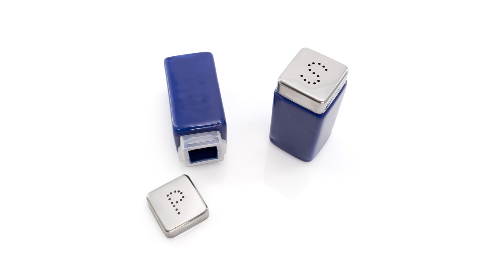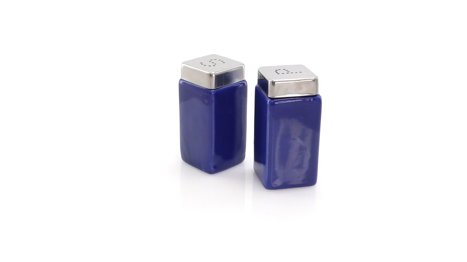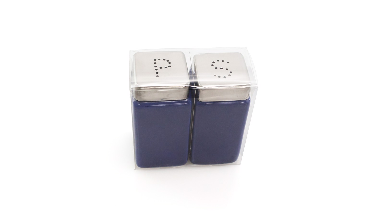 Set of 2 pieces for salt and pepper in ceramic. Available in varied colors and with die-cut -S- and -P- in dosing lid. Presented in a PVC case. 2 Pieces