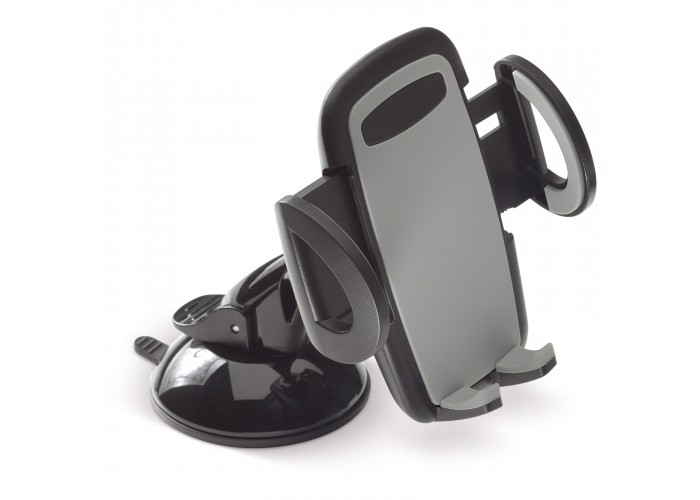 Handy phone holder for in the car to call hands-free or to follow the GPS system. The holder can be attached on the dashboard or on the front window. Easy to mount because of the sticky suction cap.