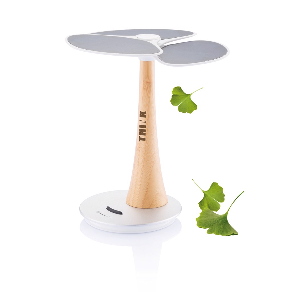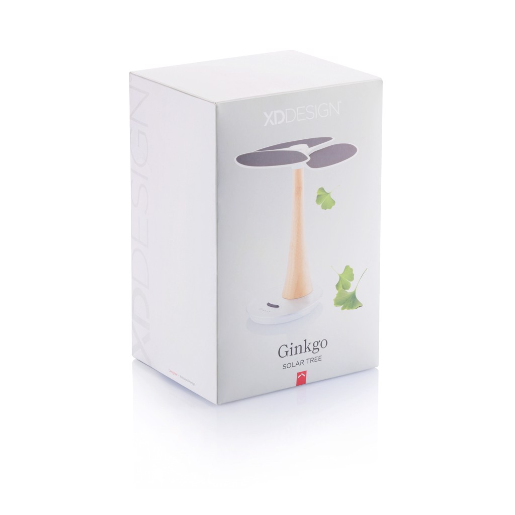 Powerbanka Ginkgo je vybavena integrovanou dobíjecí lithiovou baterií 4 000 mAh pro uchování sluneční energie. Kapacita se zobrazuje na malém LED displeji. Je vyroben z ekologických materiálů ReSound a bambusu. USB výstup umožňuje připojení telefonu, tabletu nebo jiného mobilního zařízení. Ochranný vzor®.