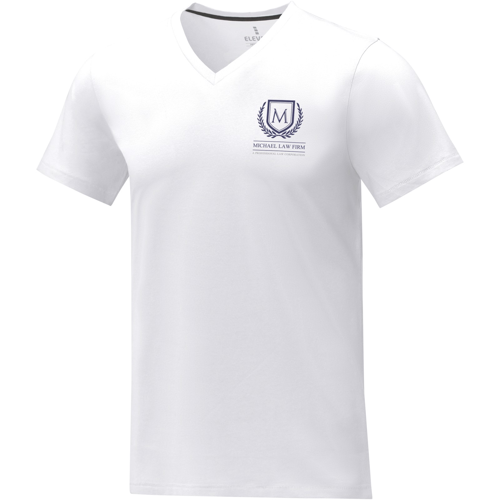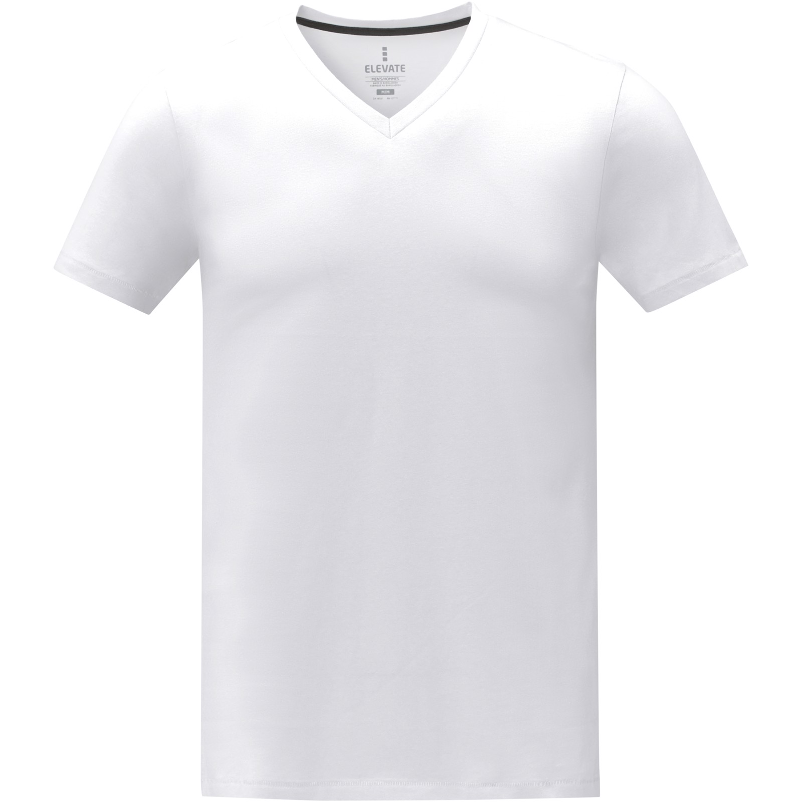 The Somoto short sleeve men's V-neck t-shirt made of 160 g/m² cotton is perfect for any occasion and a comfortable addition to any wardrobe. The ringspun cotton provides a stronger and smoother yarn, resulting in a more durable fabric that guarantees high quality branding. The V-neck design adds a touch of style and the side seams ensure a great fit. The printed in-neck Elevate branding also adds to its overall comfort, and the re-enforced shoulders ensure a continuous fit even after long-term use.