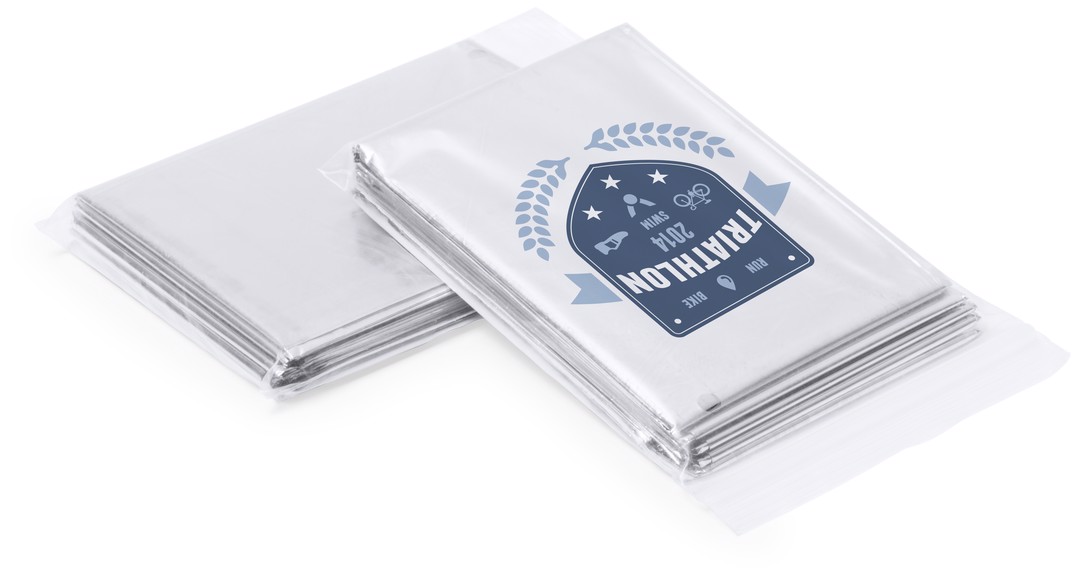 Thermal blanket made of waterproof and windproof technical material, with aluminum inside. Easily folding and designed for sports and leisure activities.