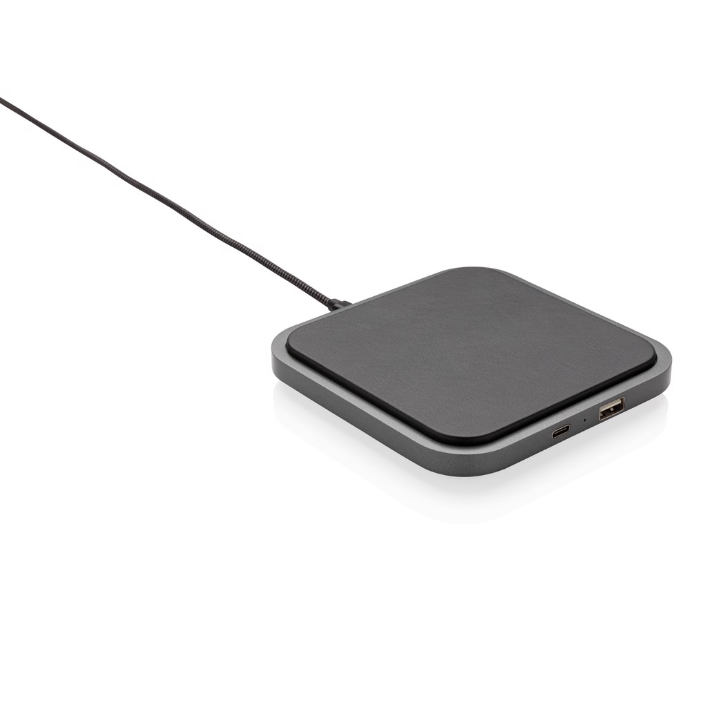 Stylová 5W bezdrátová nabíječka vyrobená z vysoce kvalitního PU a ABS. Pro nabíjení jednoduše položte zařízení na PU podložku. Kompatibilní se všemi telefony podporujícími QI, jako jsou nejnovější generace Android, iPhone 8 a výše. Zařízení nepodporující bezdrátové nabíjení lze nabíjet pomocí dodatečných výstupů USB A a USB C. Vstup 5V/2A; bezdrátový výstup: 5V/1A; USB A/USB C výstup: 5V/1A. Baleno v luxusní krabičce včetně nylonového 1,5m dlouhého micro USB nabíjecího kabelu.