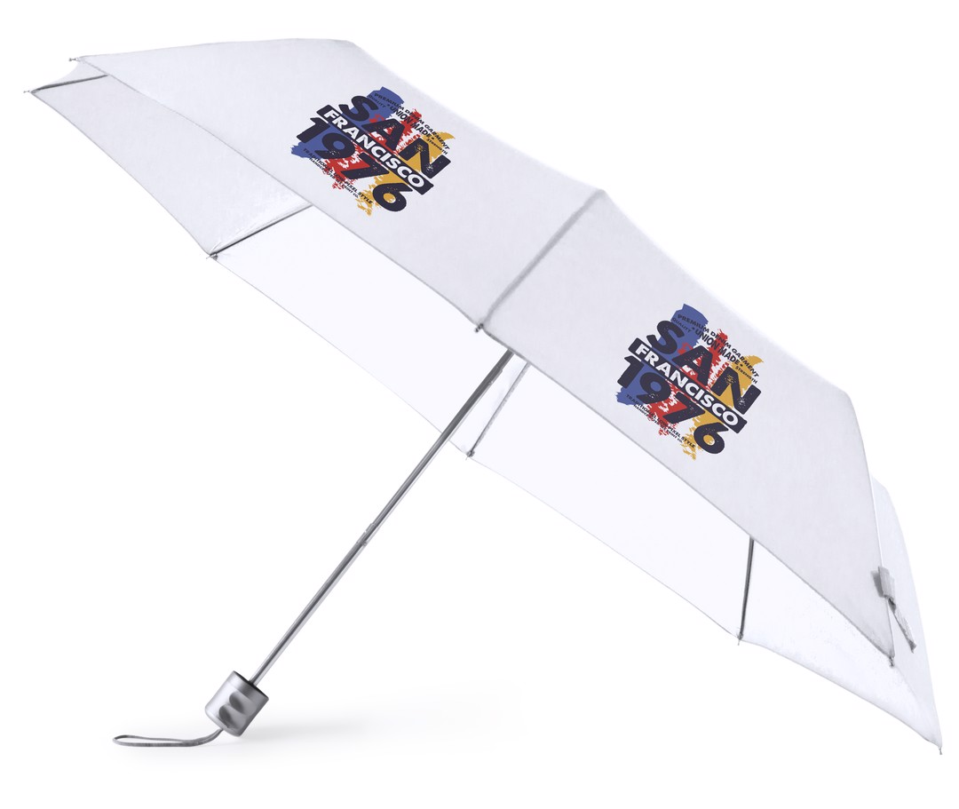Folding umbrella of 8 polyester 170T panels in a wide range of bright tones and 96cm in diameter. Manual opening, with silver colored metal ribs, velcro closure and ergonomically shaped carrying strap. Presented in a matching color individual case.
