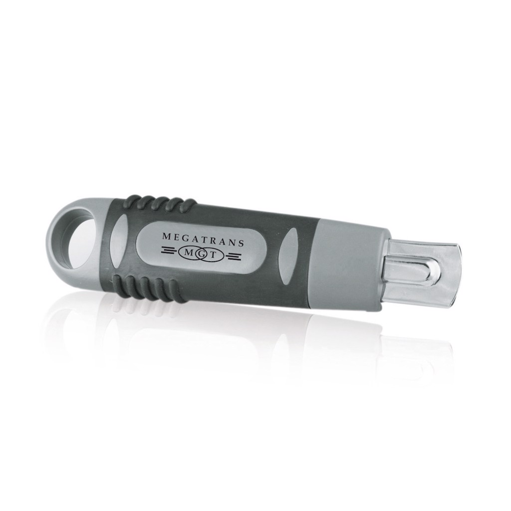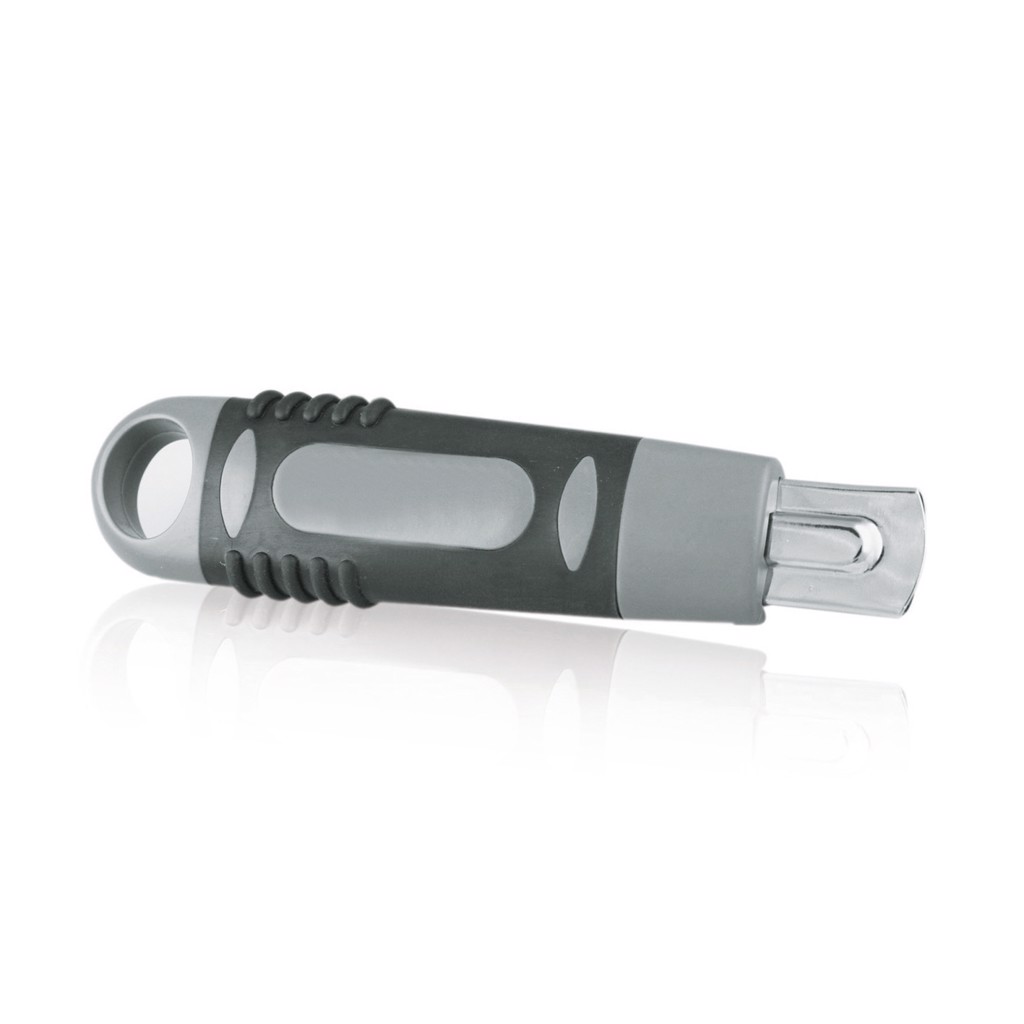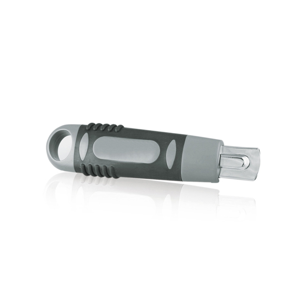Vysouvací univerzální nůž s vyměnitelným ostřím 80 x 9 mm, obsahuje odlamovací čepel o 12 segmentech. Součástí je nástroj pro odlamování čepele a kapesní klip.