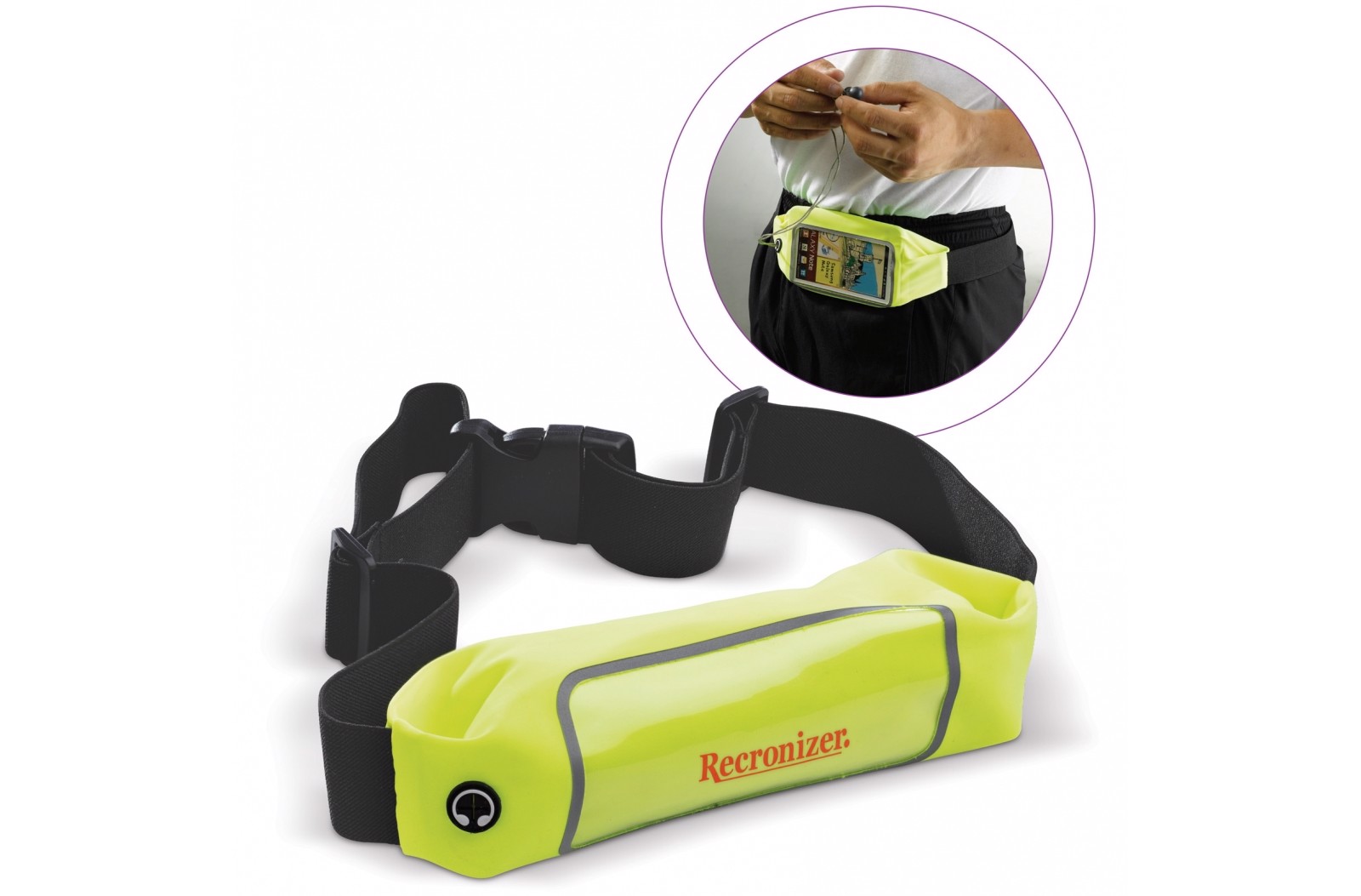 Toppoint design waterproof waistbag that can be closed with a zipper. Adjustable and attachable with the plastic buckle. Fluorescent yellow with reflecting patterns.