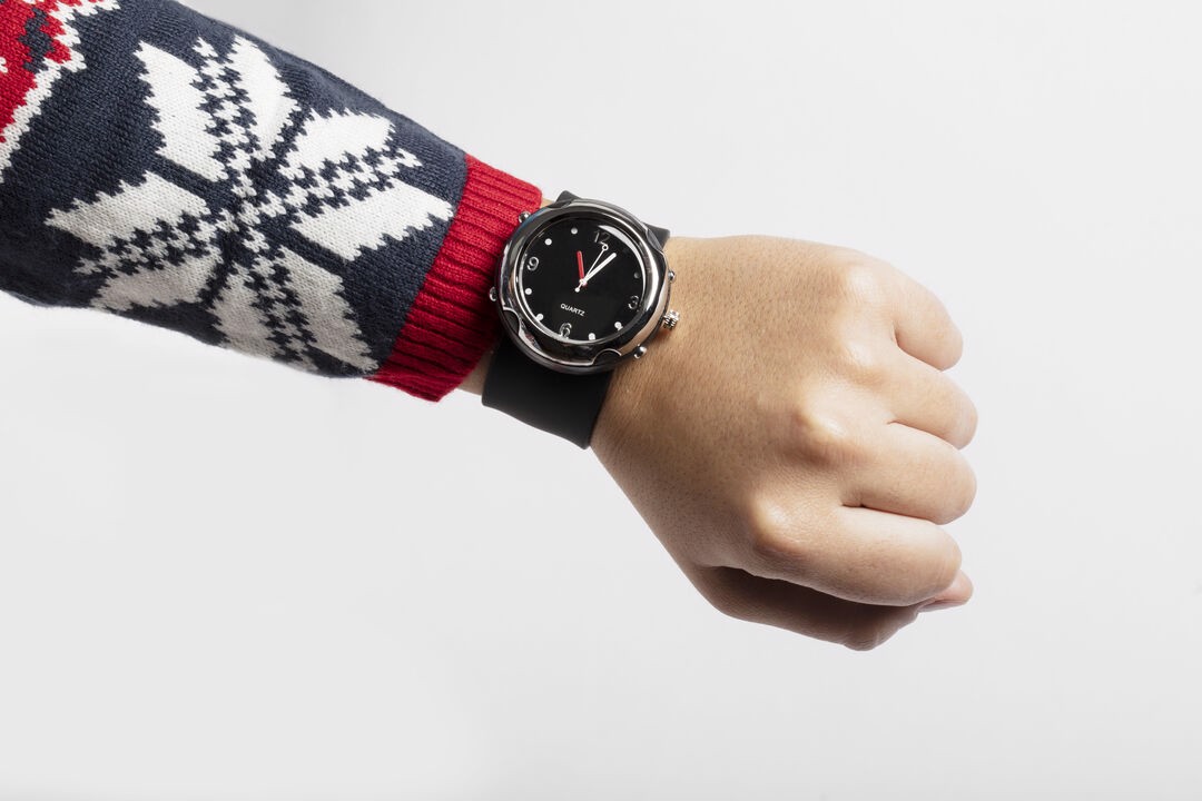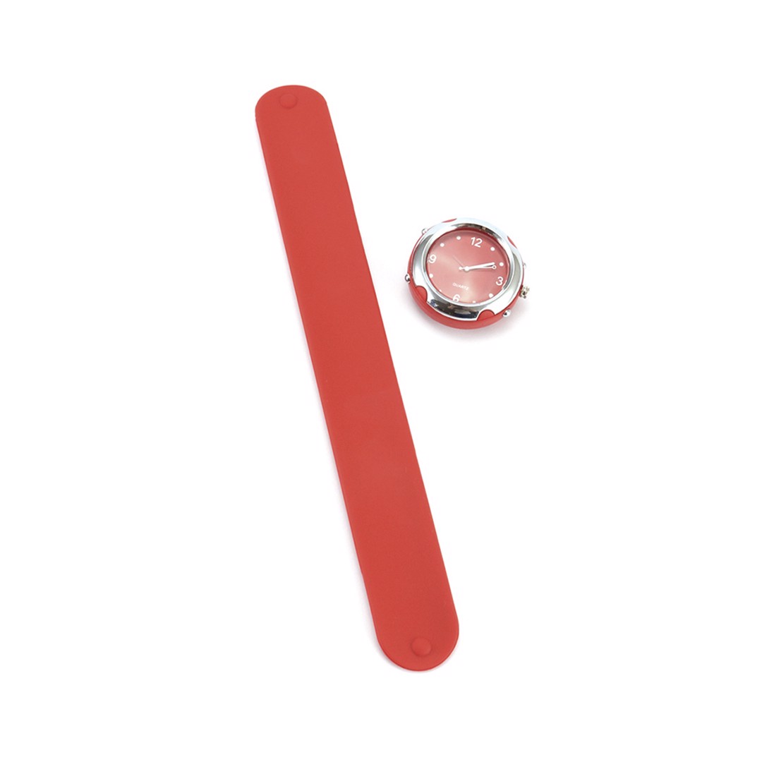 Bold design wristwatch with matching color circular analog dial case and splash water resistant. With soft silicone strap in matching color and buckle closure. Presented in an individual bag.