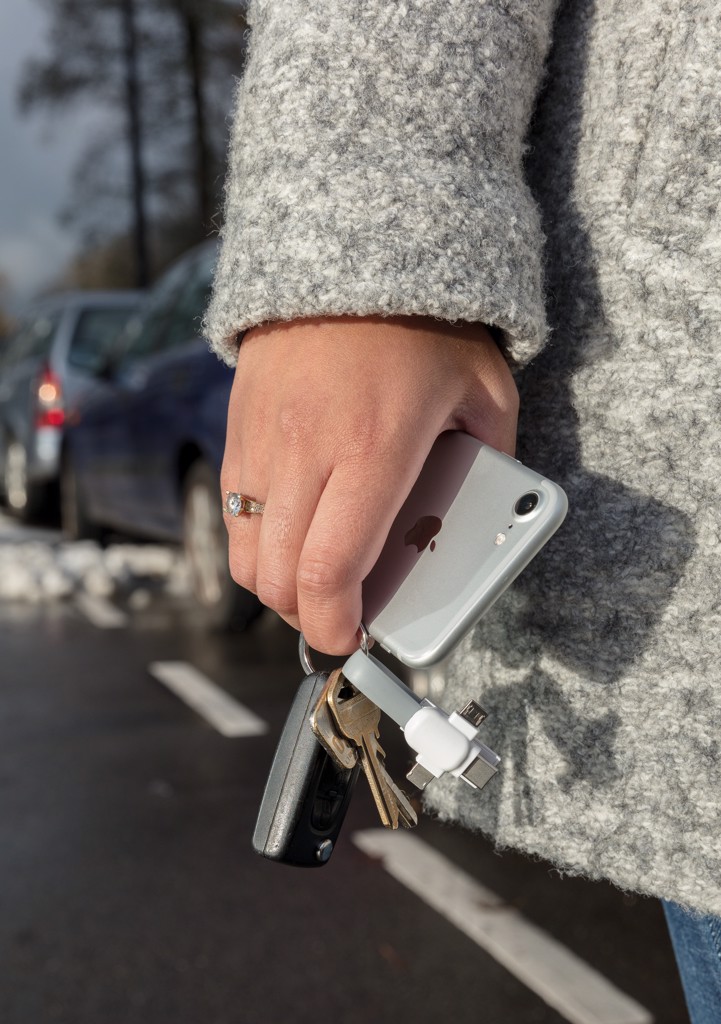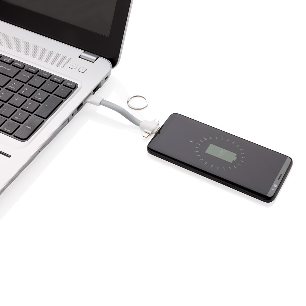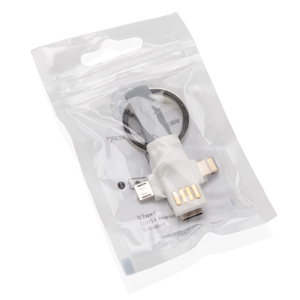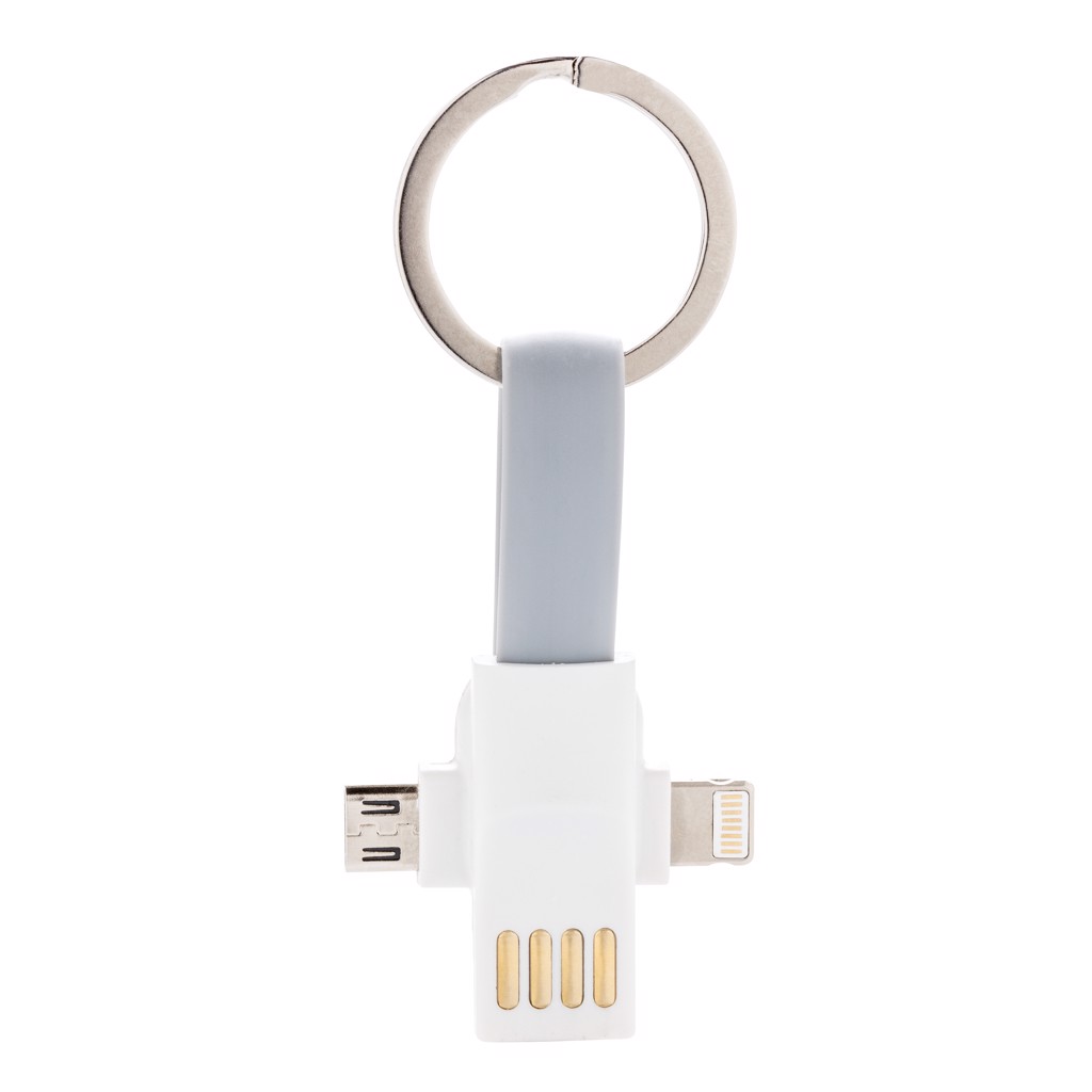 3-in-1 Kabel für den Schlüsselring - Weiß / Grau