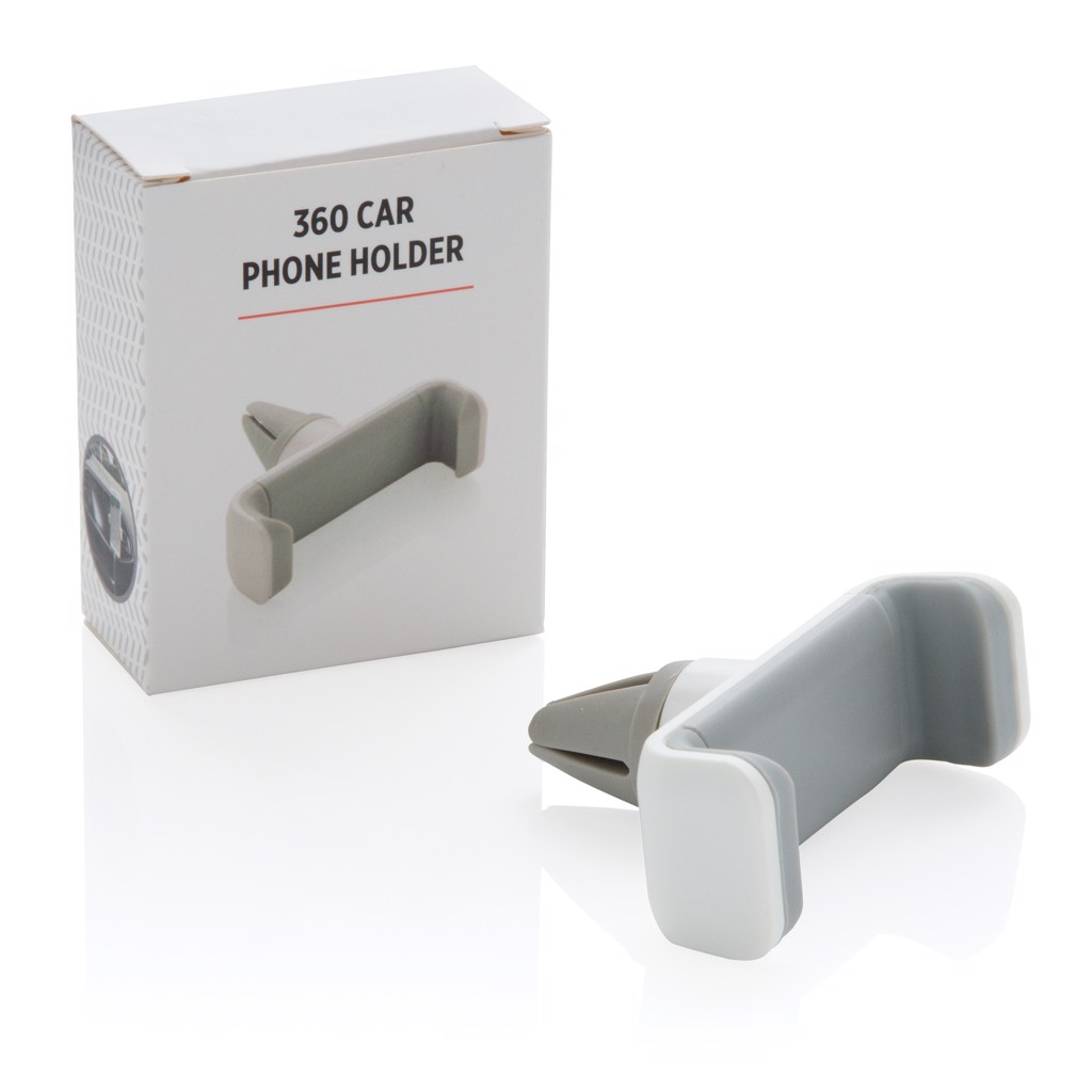 360 Grad universal einsetzbarer und flexibler Telefonhalter für das Auto. Aus ABS Material und Silikon - mit Edelstahl Mechanismus, um den Halt zu gewährleisten.