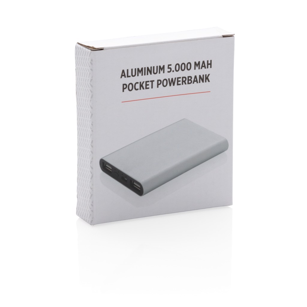 Aluminium 5.000 mAh Pocket Powerbank - Silber / Schwarz