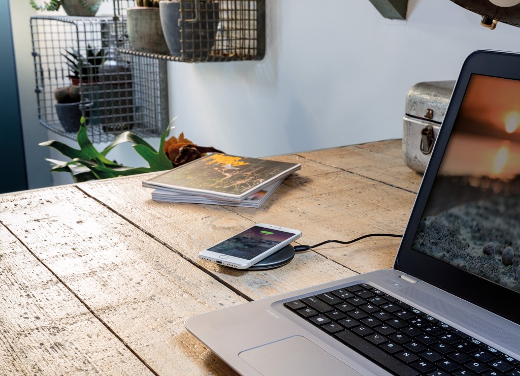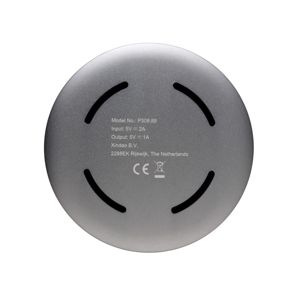 Charge your mobile devices without connecting a cable. Just place your mobile phone on the pad and wait for the charging notification to appear. The aluminium charging pad supports 5W charging. With air holes in the side to keep the charger cool while charging and rubber strips to ensure stability. Compatible with all QI enabled devices like Android latest generation, iPhone 8 and up. Input: 5V/2A. Wireless Output: 5V/1A 5W. Including 100 cm micro USB cable.