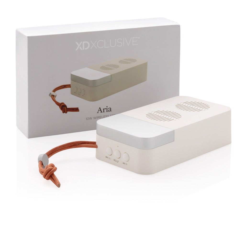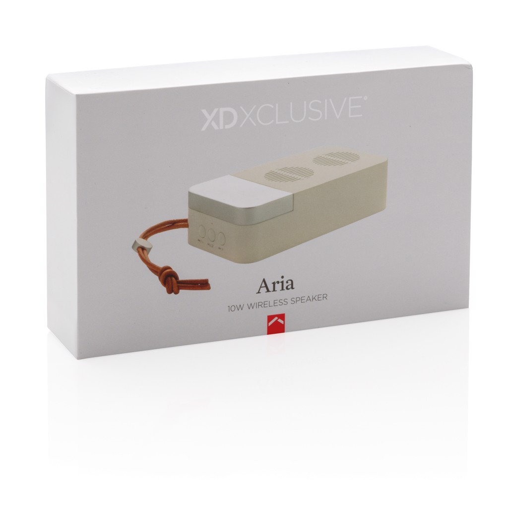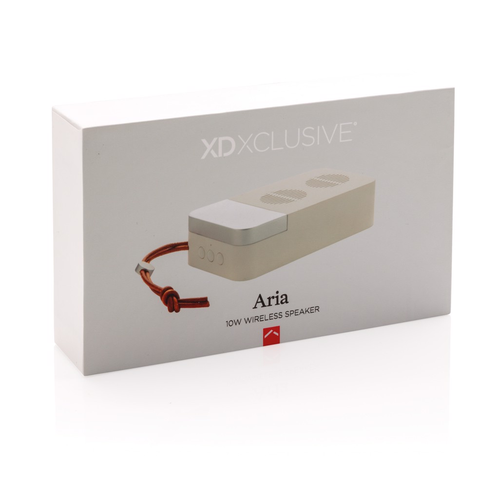 Der Aria 10W Lautsprecher vereint Funktionalität mit nordischem Design. Aus schickem Aluminium in Kombination mit Soft-Touch-ABS und PU-Strap. BT5.0 für klaren Sound und eine stabile Verbidnung, sowie einer 2.000mAh Batterie für bis zu 10h Musikgenuß mit einer Ladung. In Geschenkbox verpackt. Registered design®