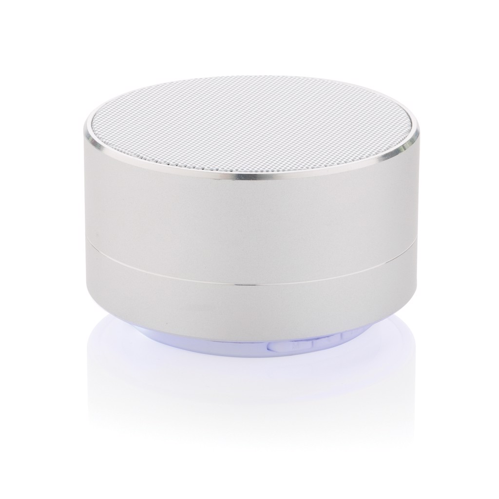 3W Lautsprecher aus Aluminium mit eingebauter 300 mAh Lithiumbatterie. Bis zu 10m Reichweite und bis zu 4 Stunden Musikhören mit nur einem Ladevorgang. Stilvolles blaues Licht am Boden. Beantworten Sie eingehende Anrufe mit der praktischen Abnehmefunktion.