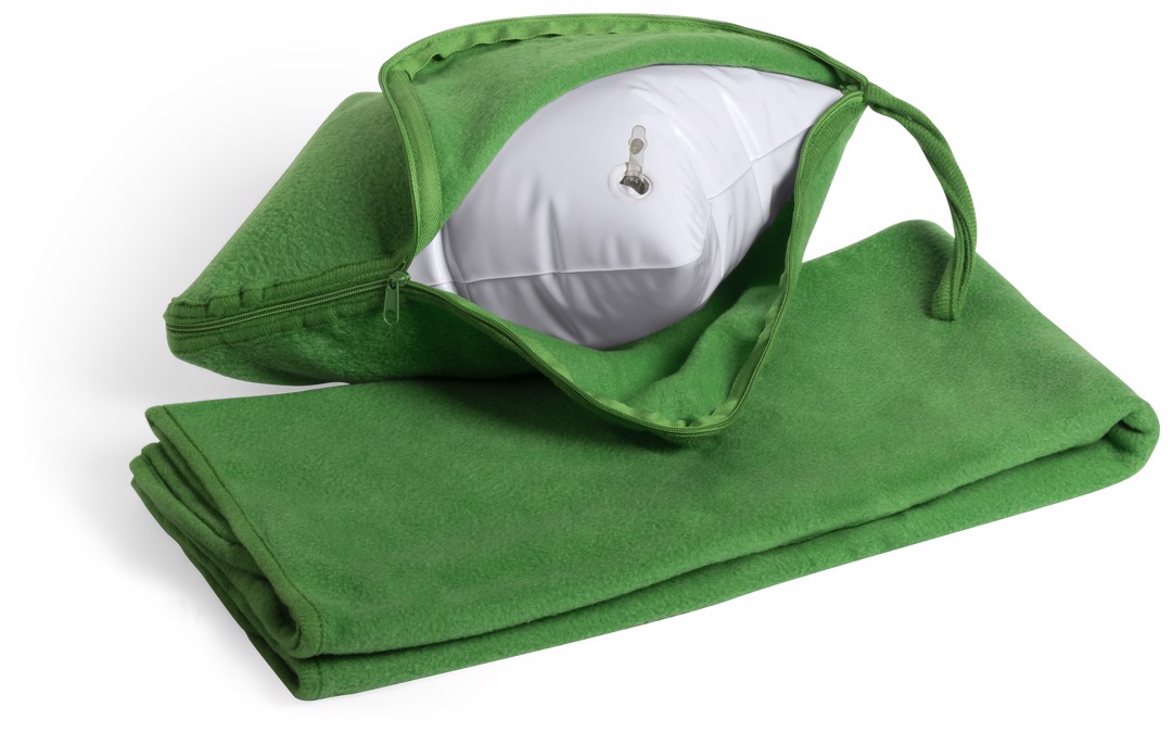 Blanket of 120 x 80cm with padding in a wide range of bright tones. P In polar fleece material of 200g/m2 with anti-pilling treatment, presented in a matching color individual bag with zipper and carrying handle. Blanket 80 x 120 cm. Pillow 27 x 24 cm. Anti-Pilling