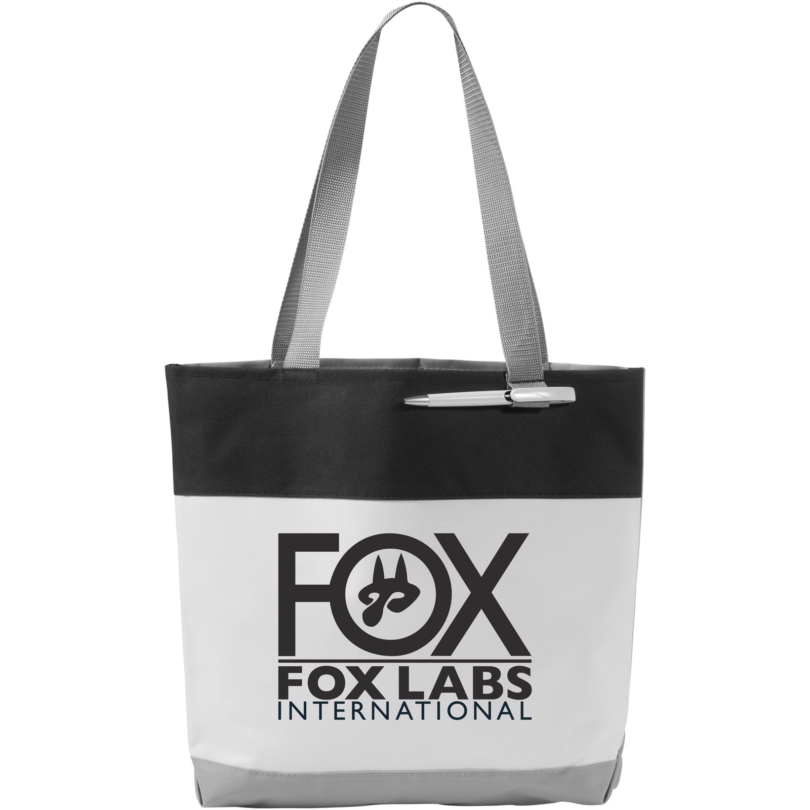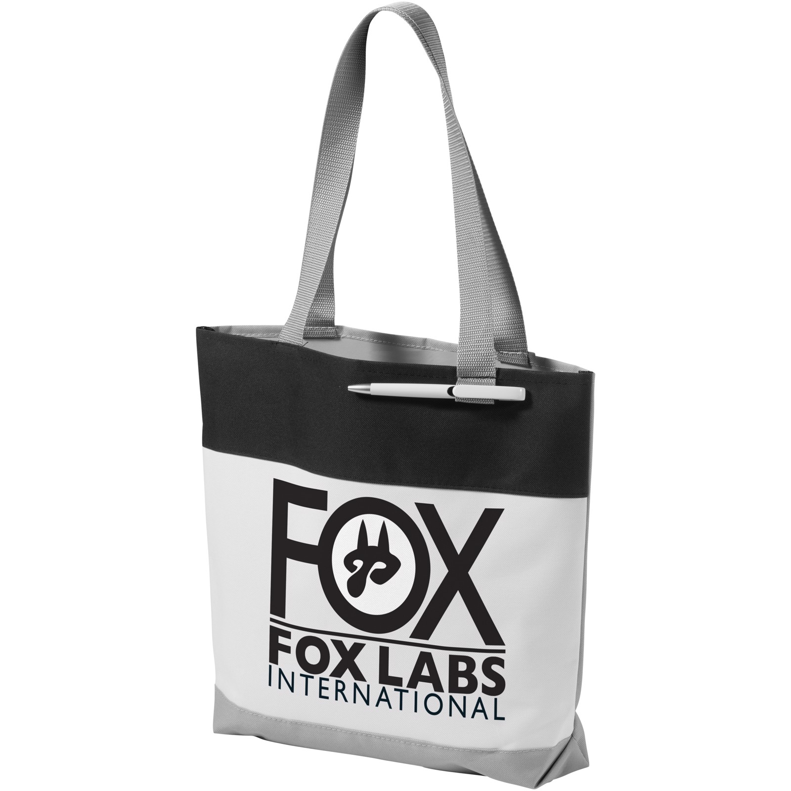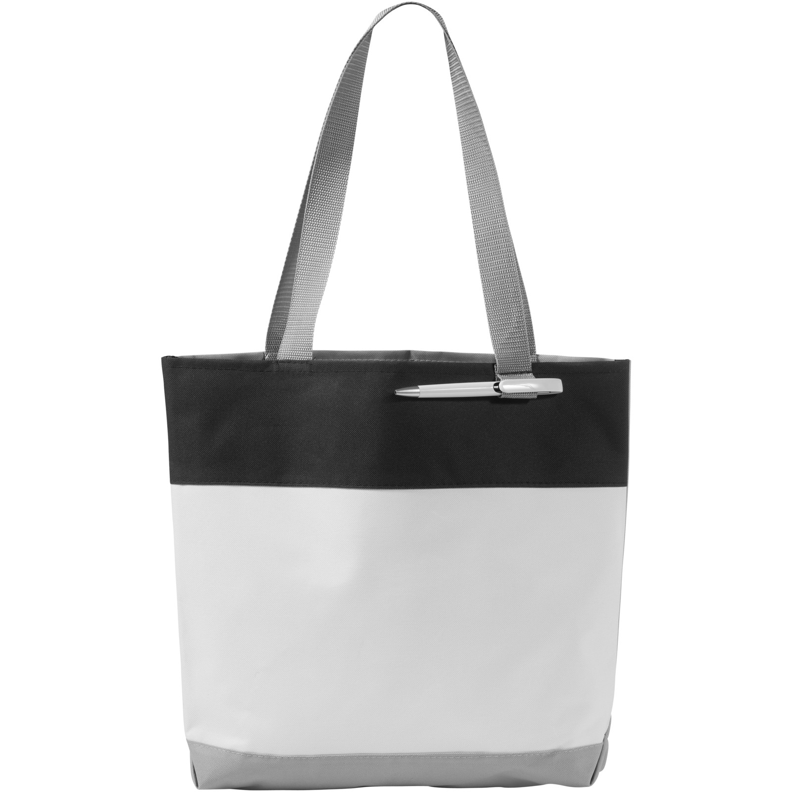 Frischer, kostengünstiger Taschenstil für Messen, Kongresse und Geschäftsbesprechungen in erfrischenden Farbtönen und dem beliebten Color-Dip-Trend. Offenes Hauptfach und Stiftschlaufe vorne. Tragegriffhöhe 27 cm.