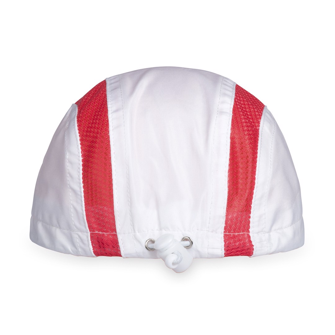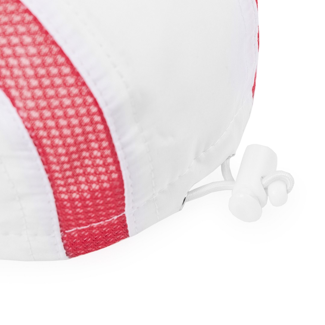 5 panel sports cap in soft microfiber of bicolored design and in a wide range of bright tones. Elastic closure with fitting accessory and mesh panels for sweat.