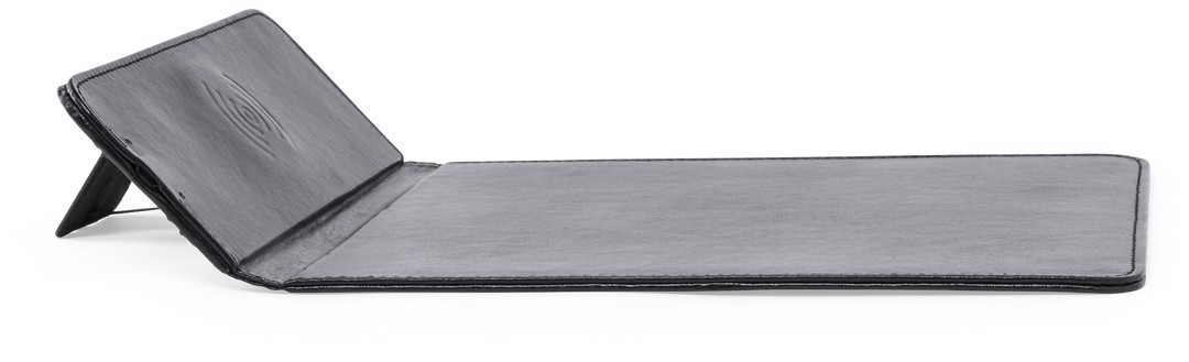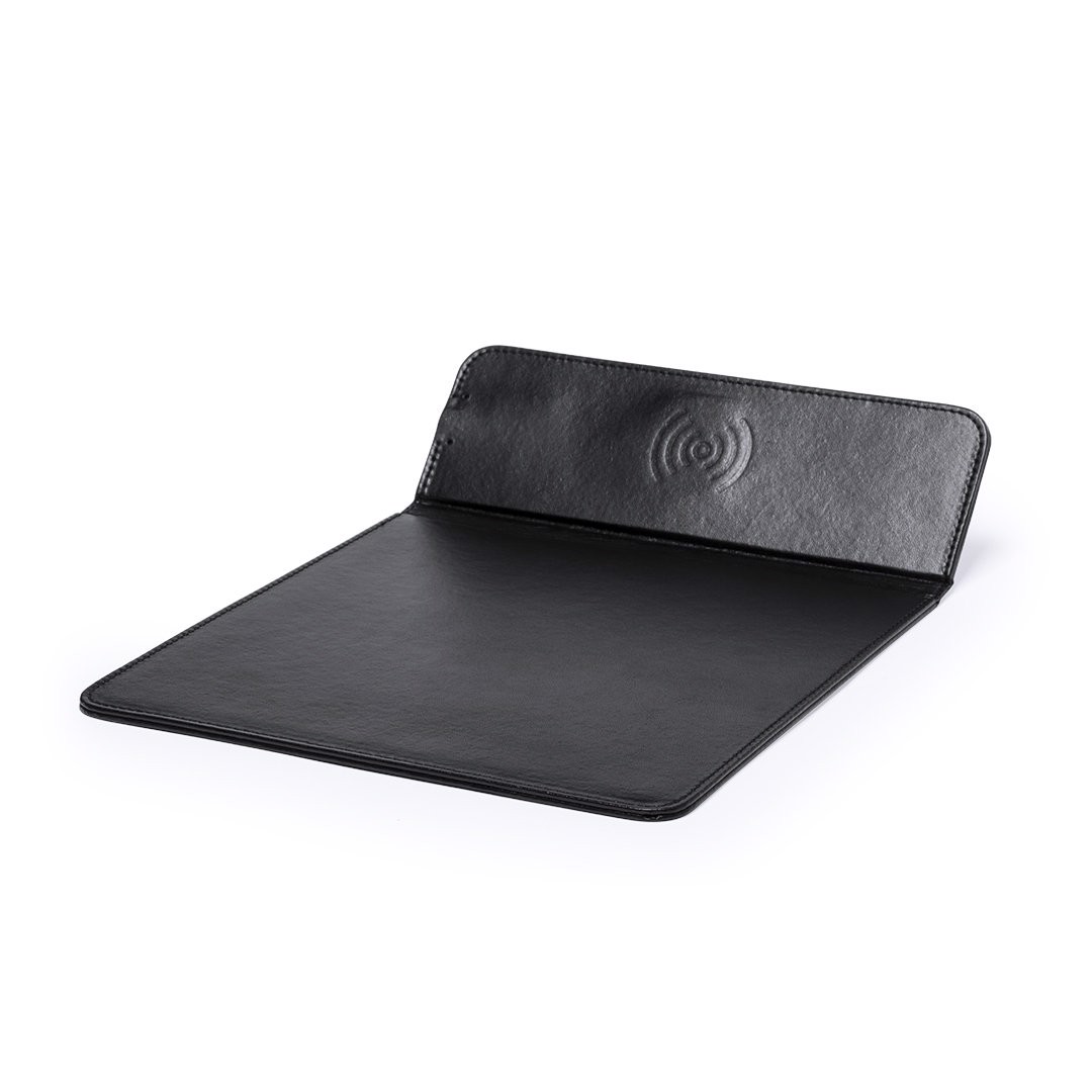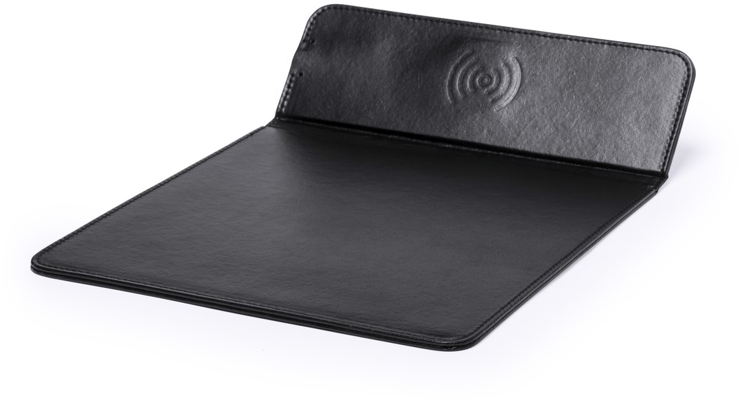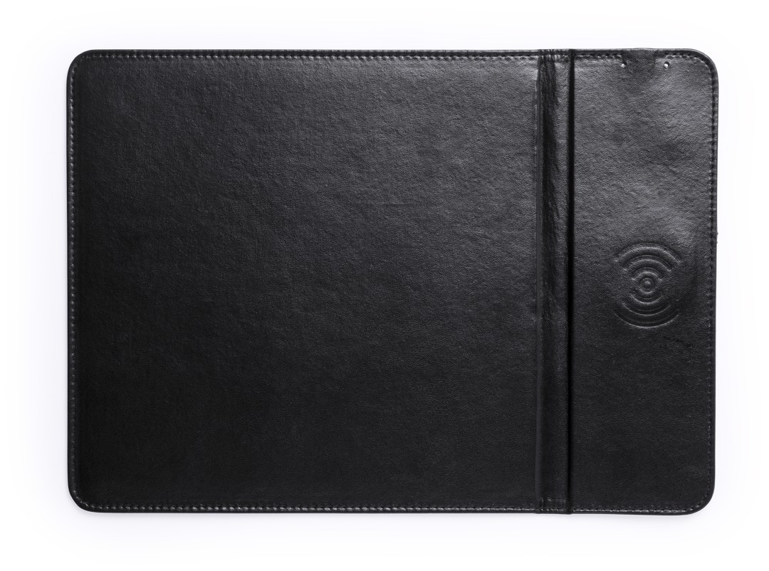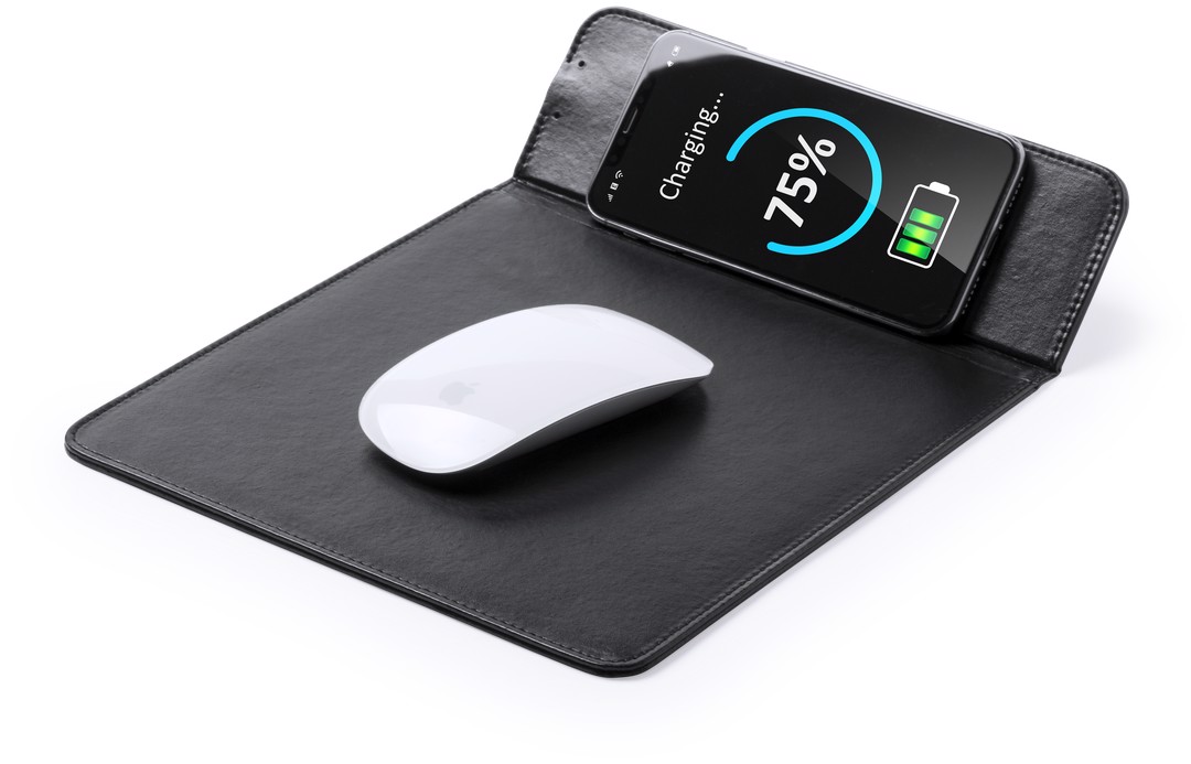PU leather mousepad with built-in, wireless, charger. 1,000 mA charging capacity -micro USB cable included-. With non-slip base and integrated smartphone holder. Compatible with devices equipped with wireless charging technology and presented in an individual design box. Wireless. Cable Included