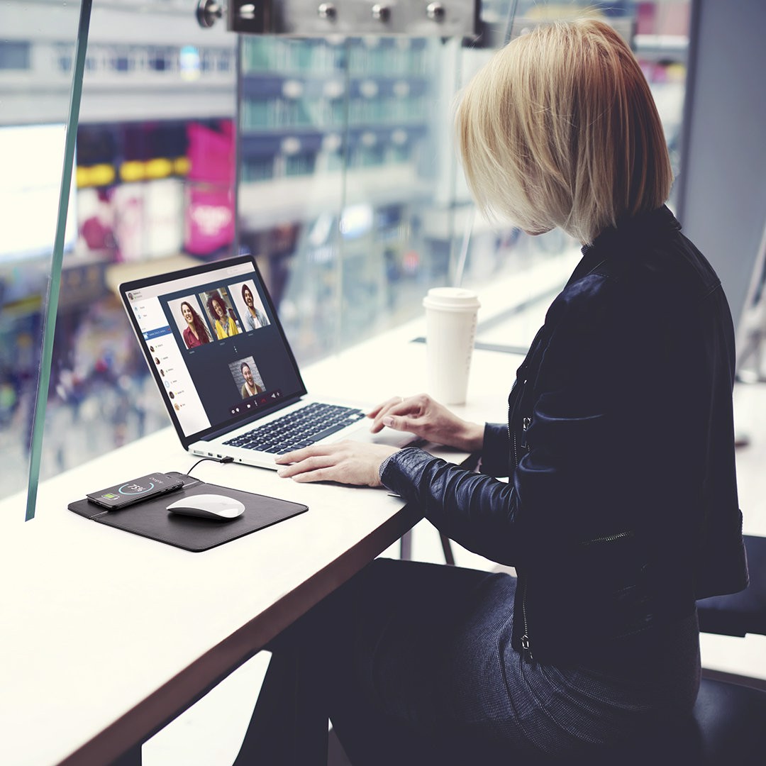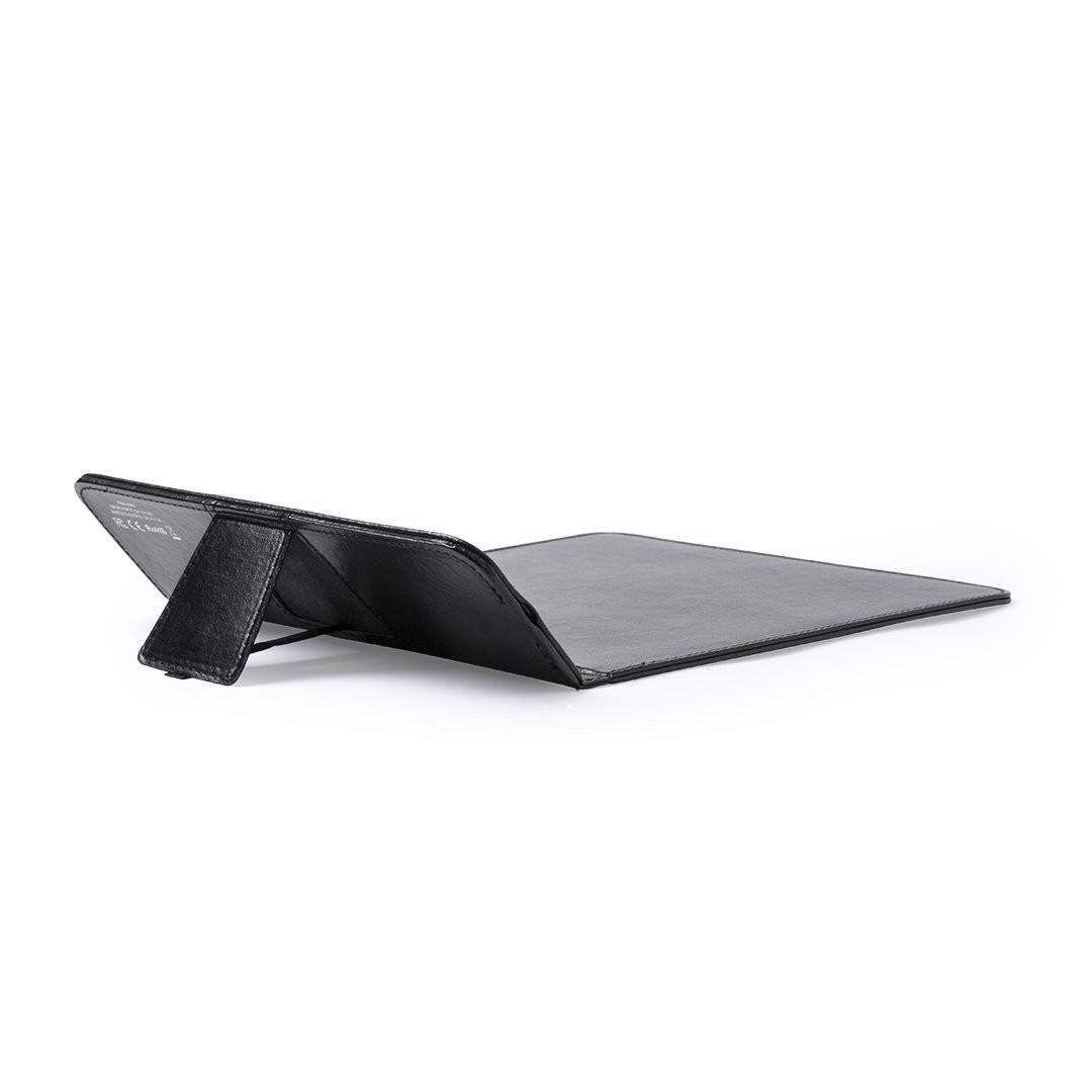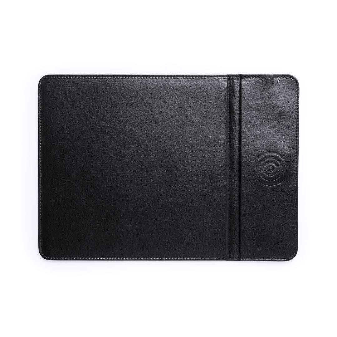 PU leather mousepad with built-in, wireless, charger. 1,000 mA charging capacity -micro USB cable included-. With non-slip base and integrated smartphone holder. Compatible with devices equipped with wireless charging technology and presented in an individual design box. Wireless. Cable Included