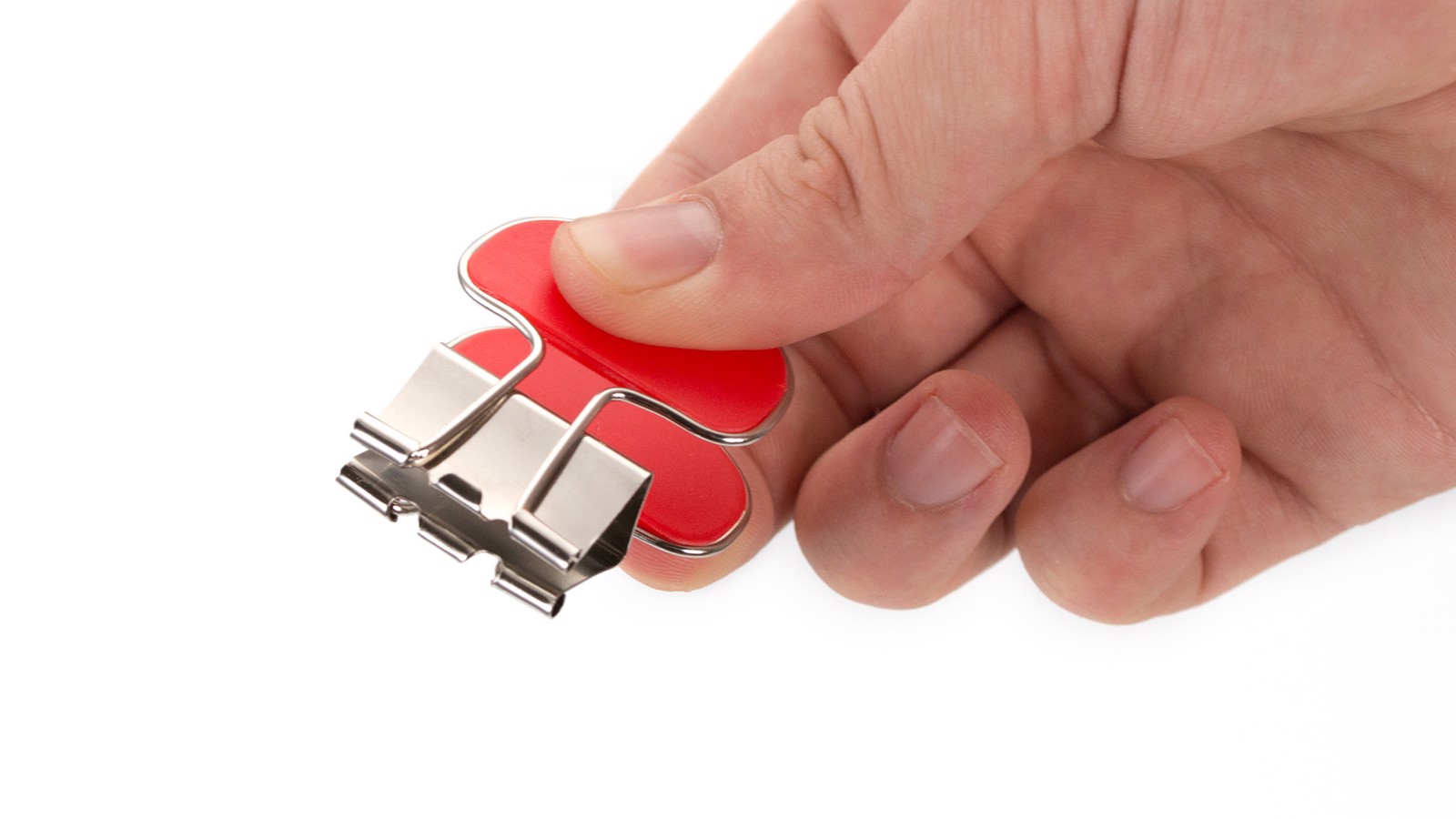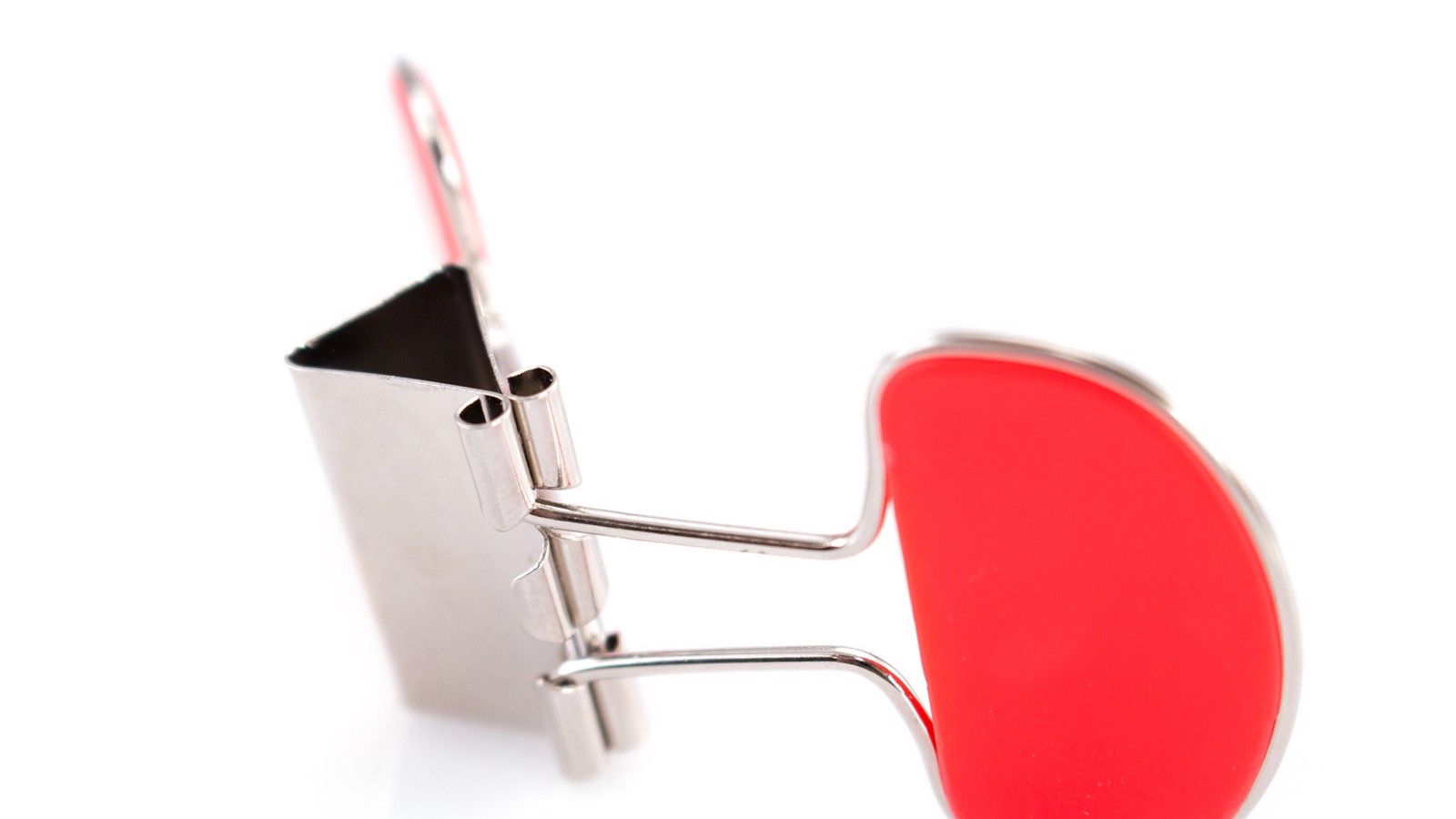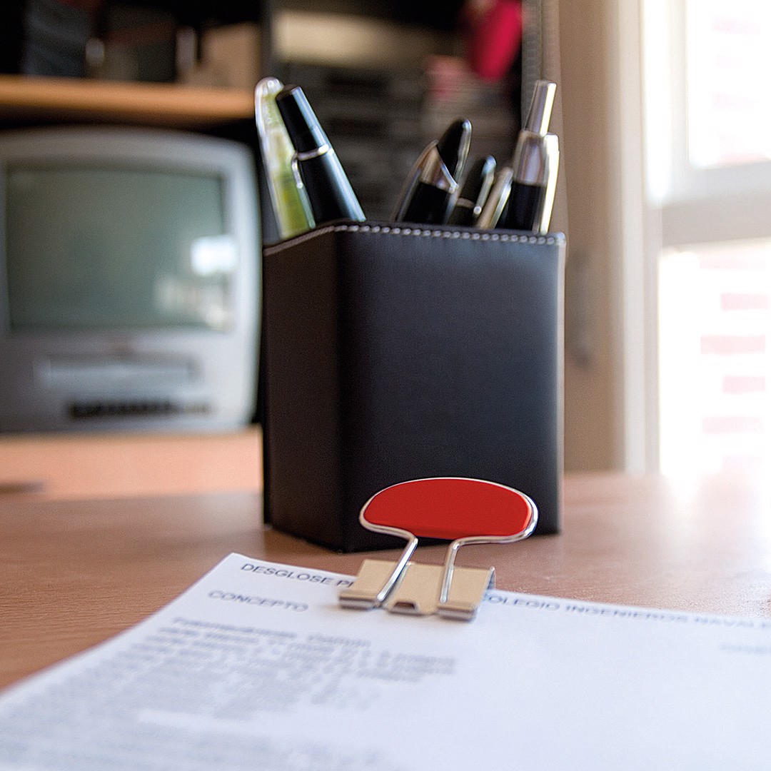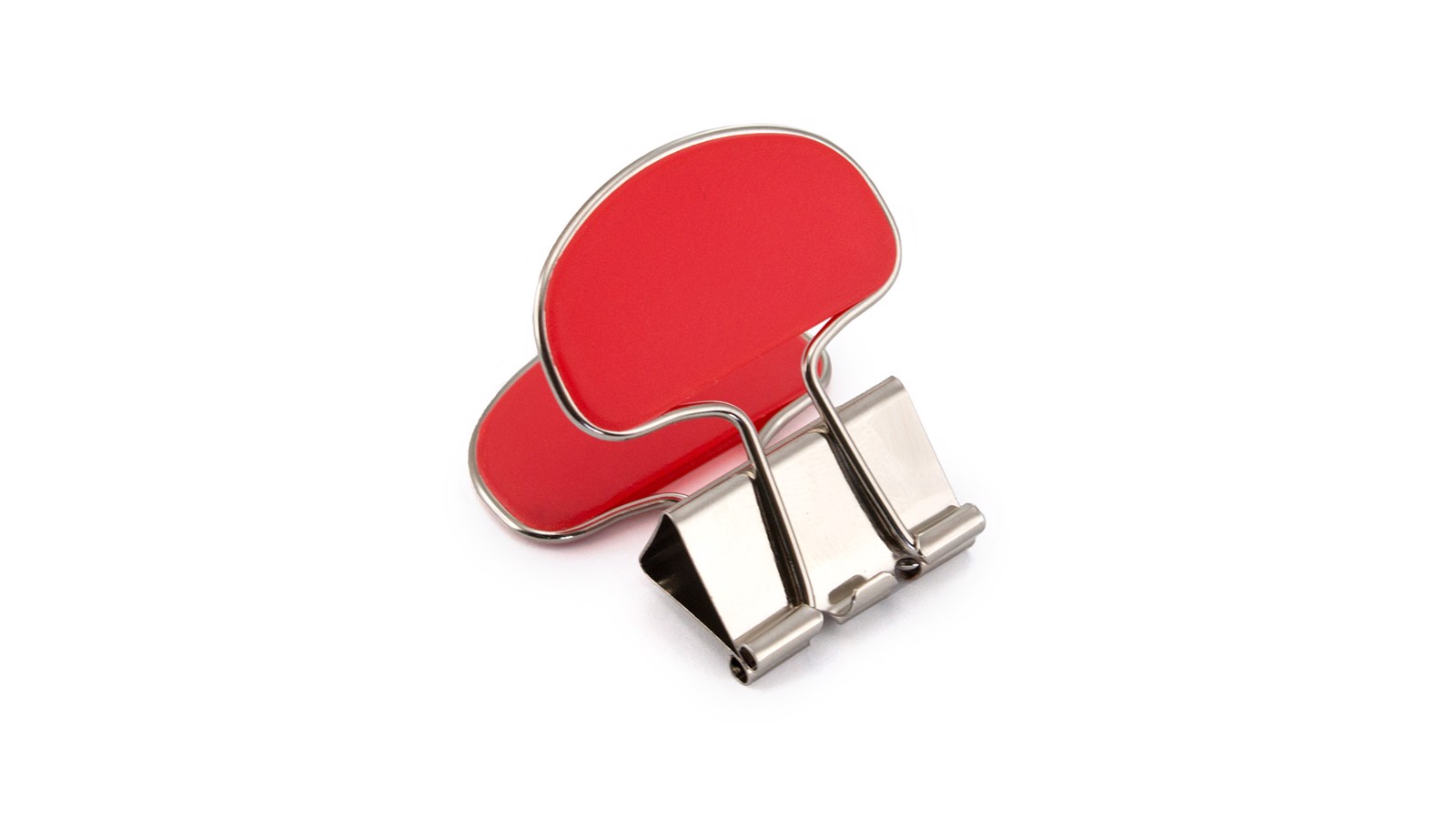 Clip in an original design, with shiny metal body and buttons of soft finish in varied colors.