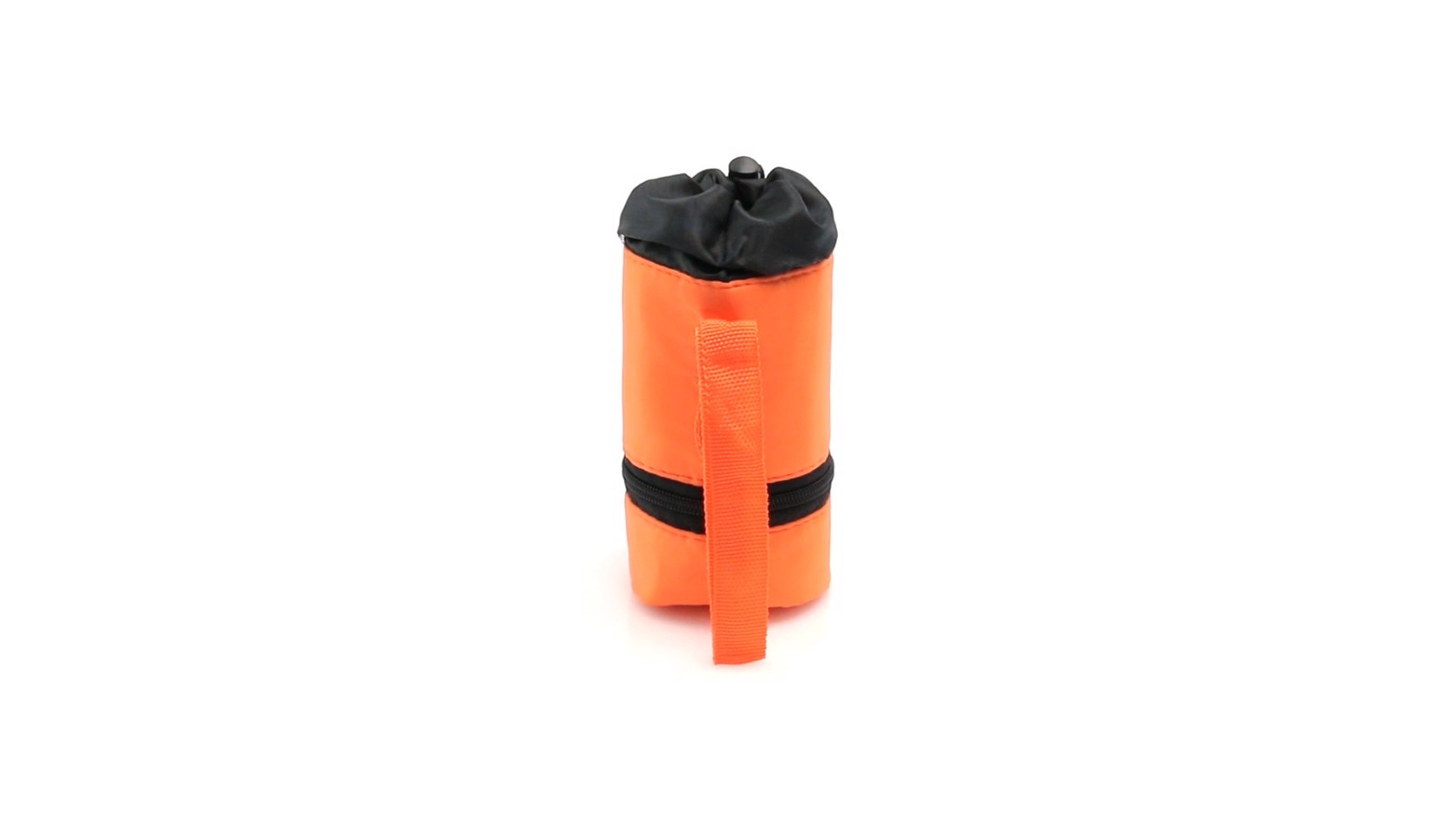 Extendable cooler bag for cans up to 330ml and bottles up to 500ml in resistant polyester of vivid colors. With zipper for height adjustment, string closure and comfortable carrying handle. Isothermal inside in aluminum finish. Suitable for Cans 330 ml and Bottles 500 ml