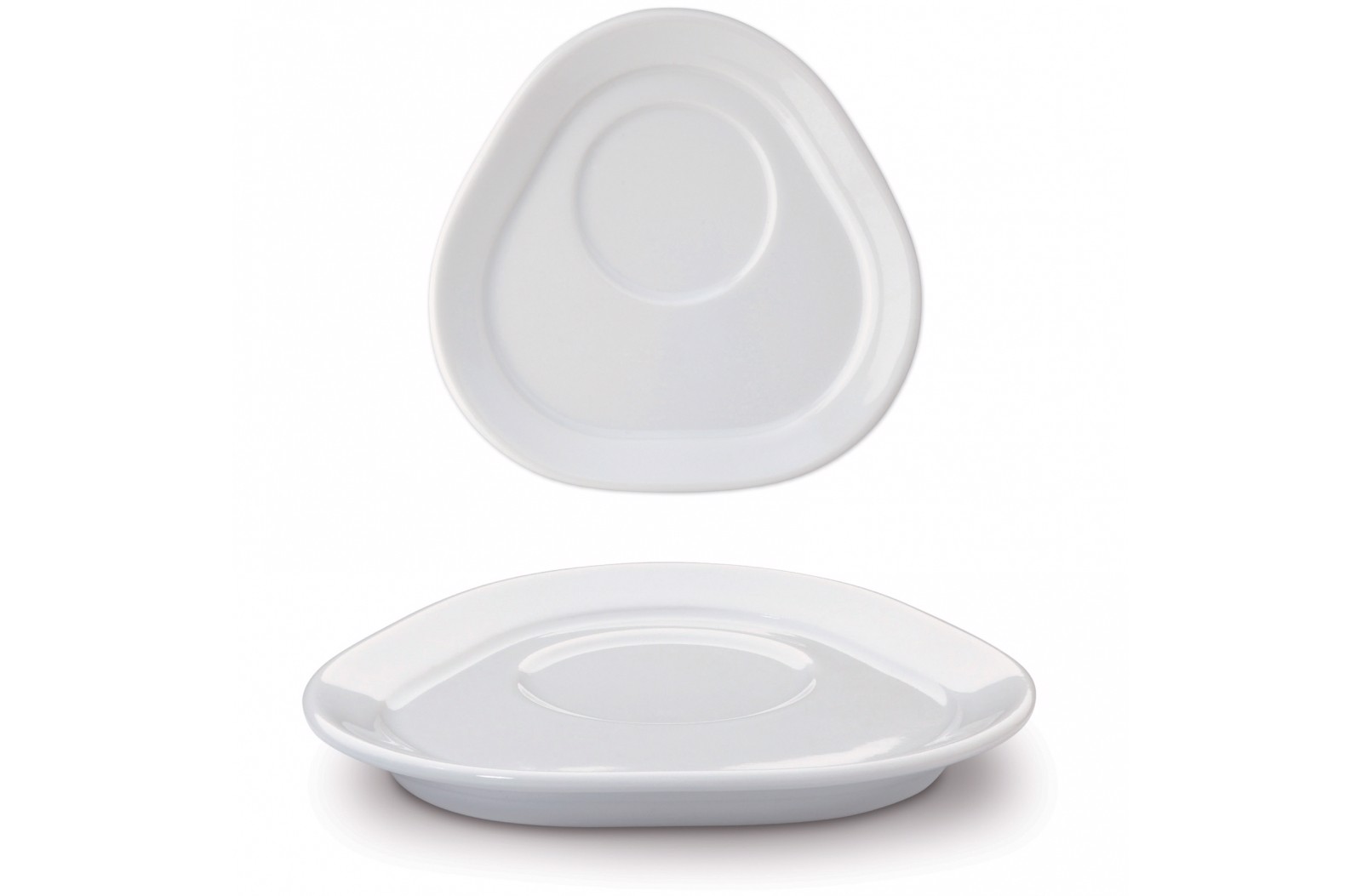 Dreieck Teller aus der Toppoint Design Serie 'Satellite'. Der Teller wird in Europa aus hochwertigem Porzellan gefertigt. Ein großer Vorteil, der Teller hat eine schöne Druckfläche.