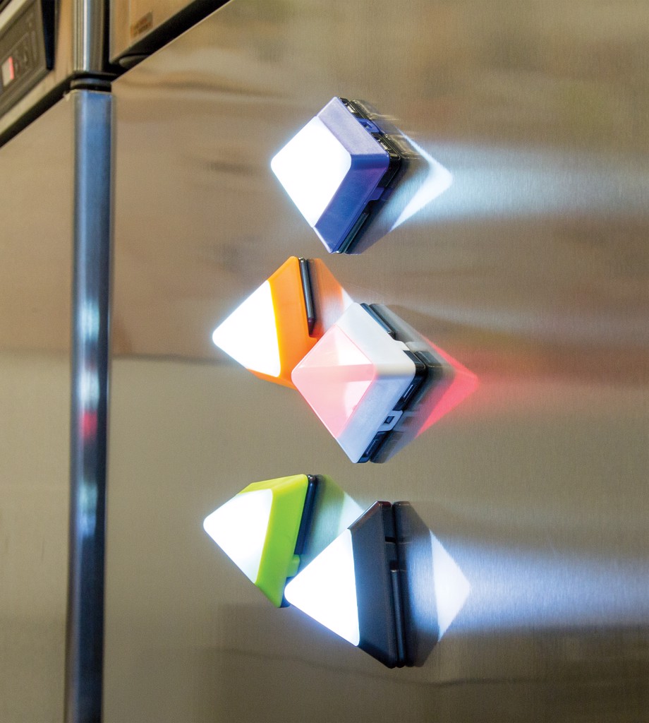 Die Laterne in dreiecksform aus ABS hat einen ausklappbaren Haken und 2 Magneten um sie überall anbringen zu können. Das Licht kann in 3 Modi eingestellt werden: hell, gedimmt und Notfall-Blinken. Inkl. Batterien.