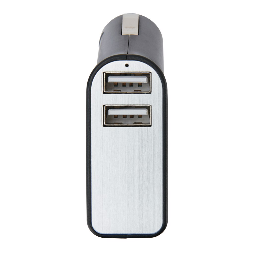 Dual USB Ladegerät zum Aufladen von 2 mobilen Geräten im Auto zur selben Zeit. Das Ladegerät verfügt über einen integrierten Gurtschneider und Notfallhammer, sodass Sie im Notfall alle Tools griffbereit haben. Output: 5V/2.1A.