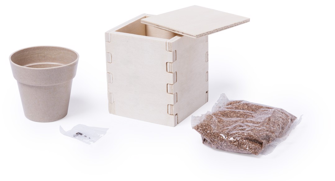 Peppermint with nature line pot. Including a original wooden box for brand, 6-8 seeds and growing substrate. Presented in an attractive design box. Biodegradable Pot. 6-8 Mint Seeds Included