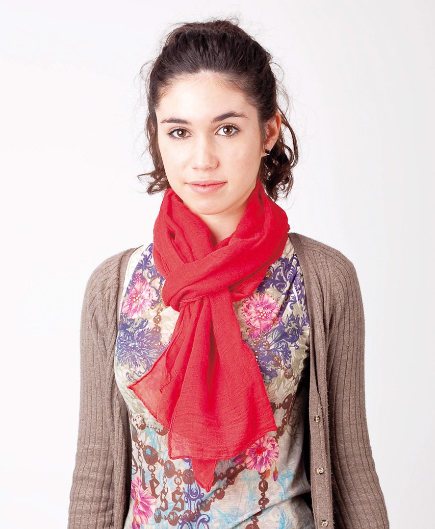 Soft foulard in combination of viscose materials and brightly colored polyester.