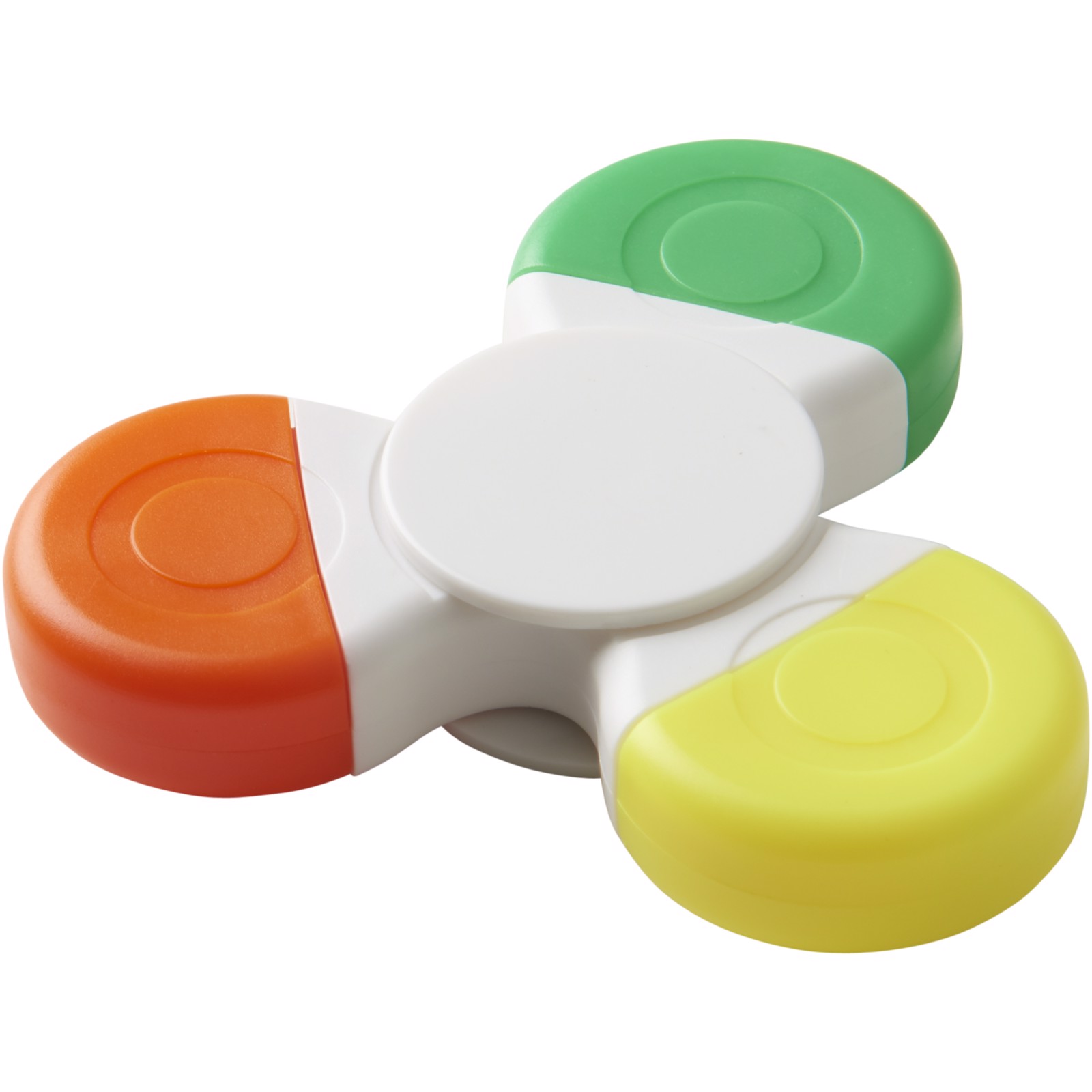 Dieses kleine, faszinierende Trendspielzeug dreht sich leise zwischen Daumen und Zeigefinger wie ein vibrierender Propeller. Es passt in jede Hosentasche, macht nicht nur Laune, sondern hilft gegen Stress, Langeweile, innere Unruhe, Nervosität und fördert auch noch die Motorik. Fang an zu drehen und zeige deine Tricks! Inkl. Textmarker in den Farben gelb, orange und grün.